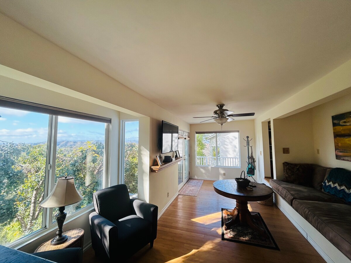 Entire 2 bedroom/1 bathroom /living room/kitchenette guest suite with separate entrance in the Santa Monica Mountains. Close to Malibu Beaches (11 miles), Warner Center (4 Miles), Malibu Creek State Park (6 Miles) ,and amusement parks such as Six flags magic mountain, and hurricane harbor ( 36 miles). Take a hike right outside your door, swim at local beaches in Malibu and come home to a quiet mountain retreat with a view.