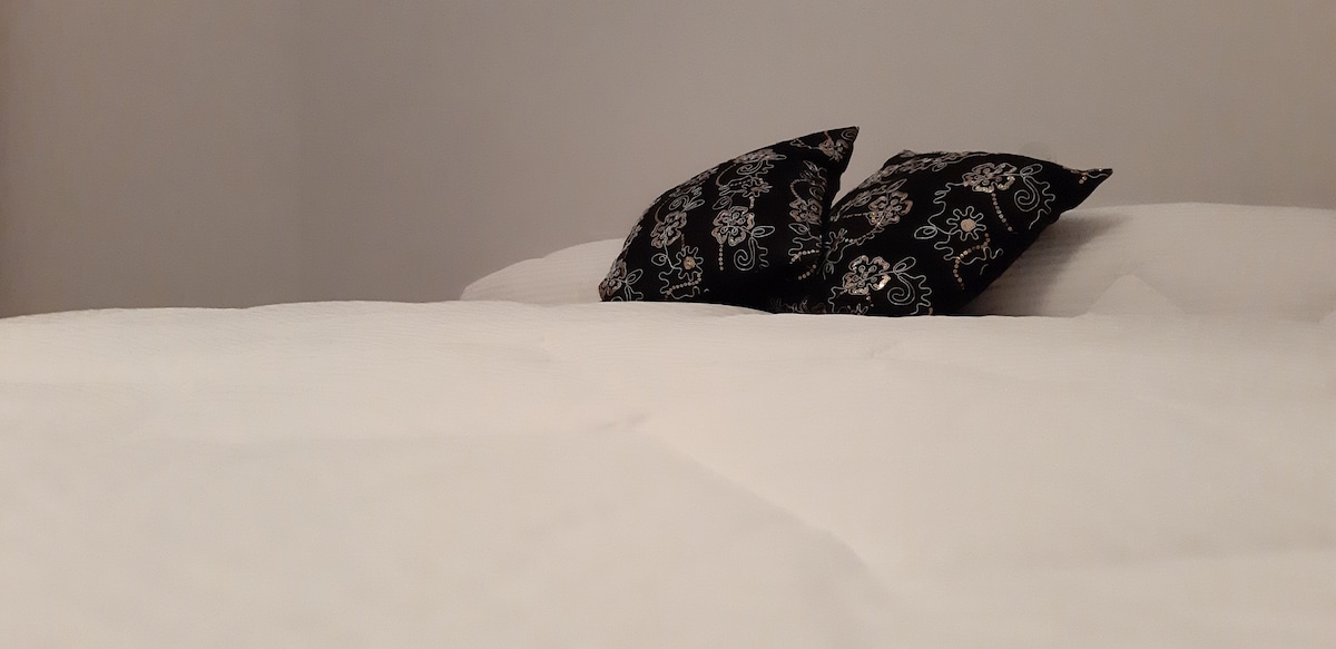 Two bedrooms that can accommodate four guests, one with a private balcony