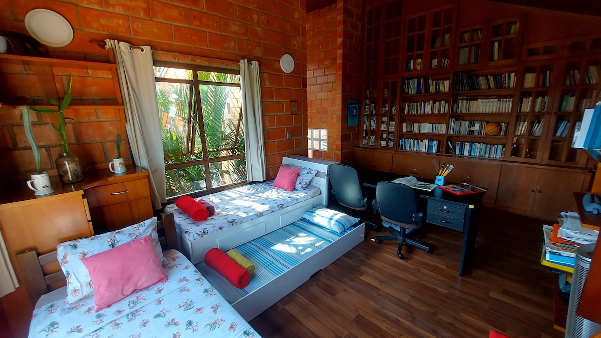 Welcome to House 11! This space is ideal for those looking for comfort around nature! The bedroom has two single beds (open bicama), spacious closet and a beautiful balcony. 3 full bathrooms and 1 toilet are available to guests. Enjoy our great shared areas free of charge, such as a jukebox lounge, modern kitchen, gym, service area with washing machine, garden and yard.