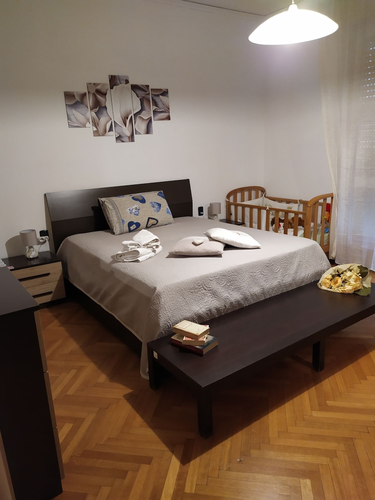 The bedroom, very cozy and bright, is equipped with a TV 43'' 4K ULTRA HD TV, including Netflix and YouTube. Wi-Fi connection is available.