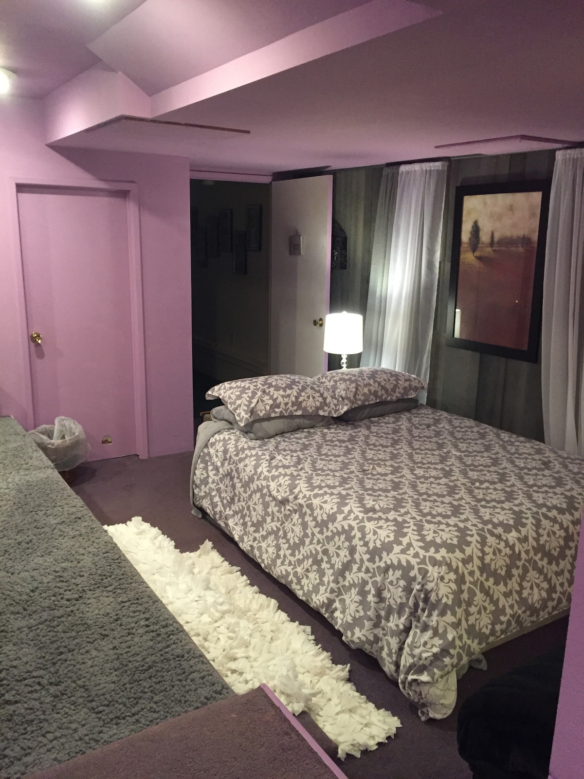 The yard is not fully-fenced. Dogs must stay on lead or respond to voice command. No roaming off-property. The house has no a/c! ‘Master’ bedroom: New firm, queen mattress, foam topper. Preparing for sleep, the sky offers you views of the moon as it glides across the sky.