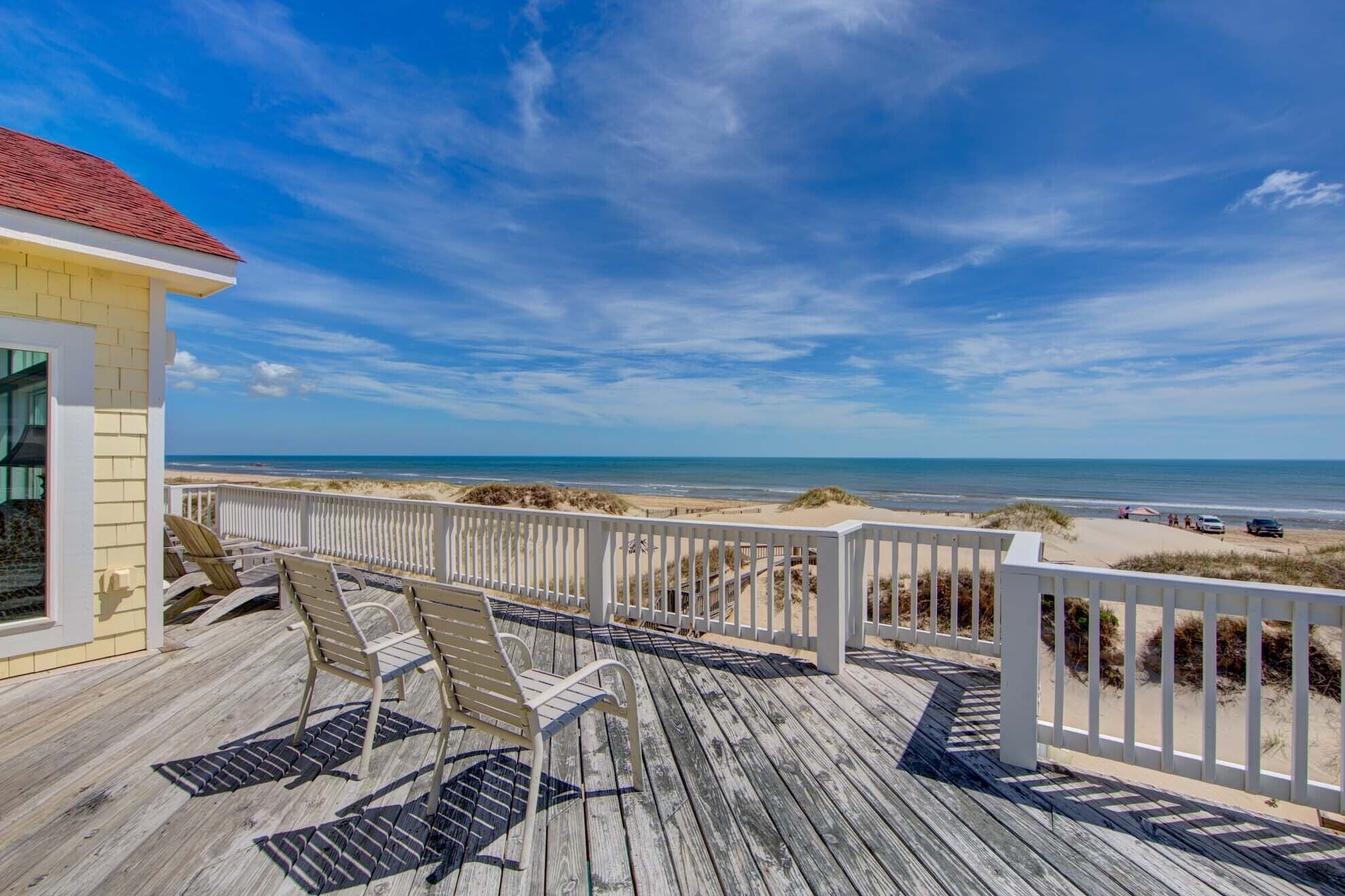 A stroll out the five foot wide runway to the elevated gazebo, with a new addition of 175 square feet of decking attached to the gazebo, will show you why you chose to have your vacation at 'Sea-Ya-Round' in Carova Beach. You will see spectacular views up and down the beach, feel the cool breezes and witness the wonders of the pelicans' flight as they glide by at your eye level. Suddenly, all the stresses of your life will disappear! Take a glass of wine and watch and savor the views for hours from the gazebo or the new decking. In the evening have your dinner in the gazebo, or on the deck and enjoy the spectacular blazing sunsets.