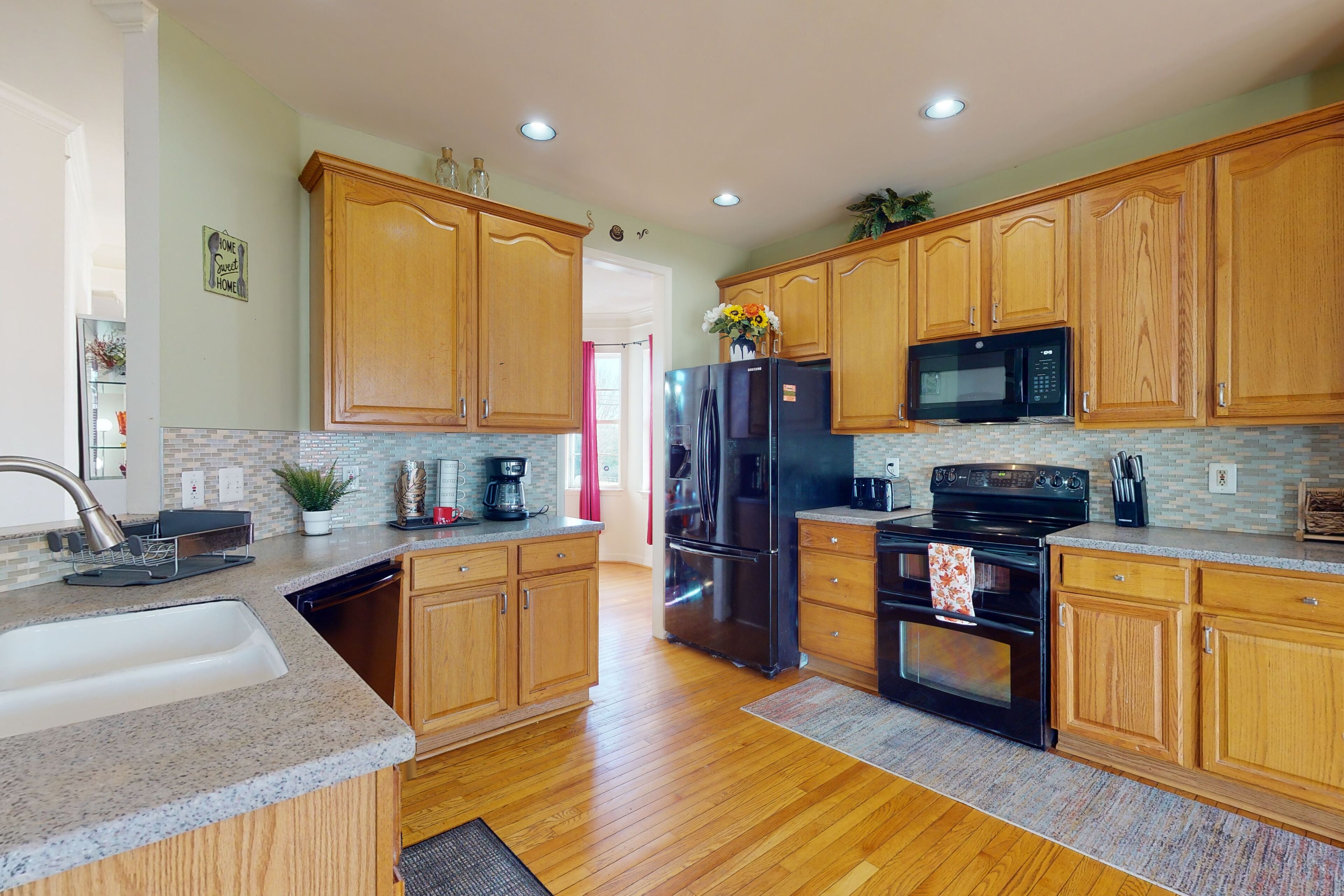 The kitchen is intended to meet your cooking and dining needs. There is a Keurig coffee maker with K cups. You will find tea bags, sugar and a variety of sweeteners.
