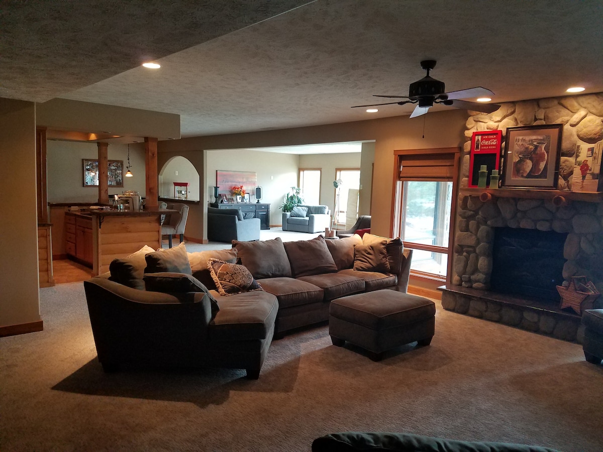 Our place consist of 2500sft walkout basement. 3- Bedrooms with queens size beds. Two large living areas. Bar area with sink, dishwasher, refrigerator and large sitting area. Pool Table, BBQ Grill, Fire Pit with lawn chairs.