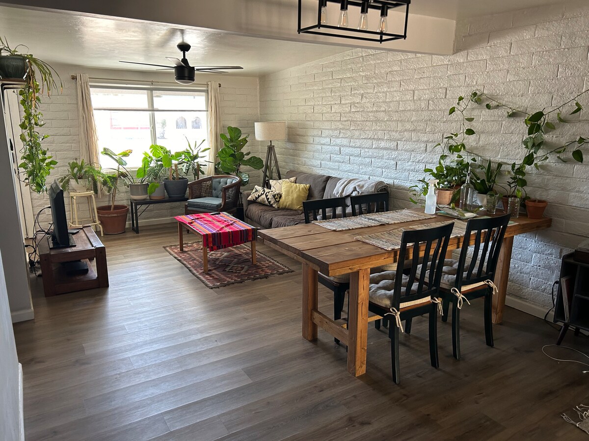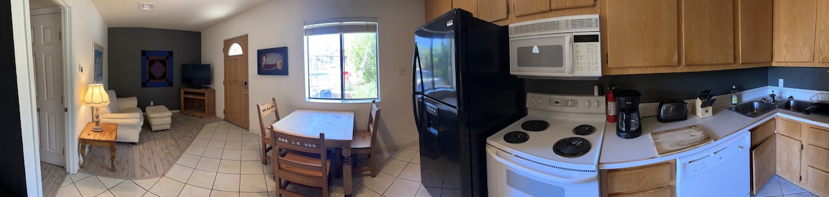 Listen to the coyotes yelp from the cozy comfort of this one bedroom Casita. Shop at nearby Whole Foods and cook in the full kitchen. It is located in a quiet, rural, walkable neighborhood that is still an easy drive to downtown and the University. Access to hot tub and pool. Back patio has a grill and table for two.