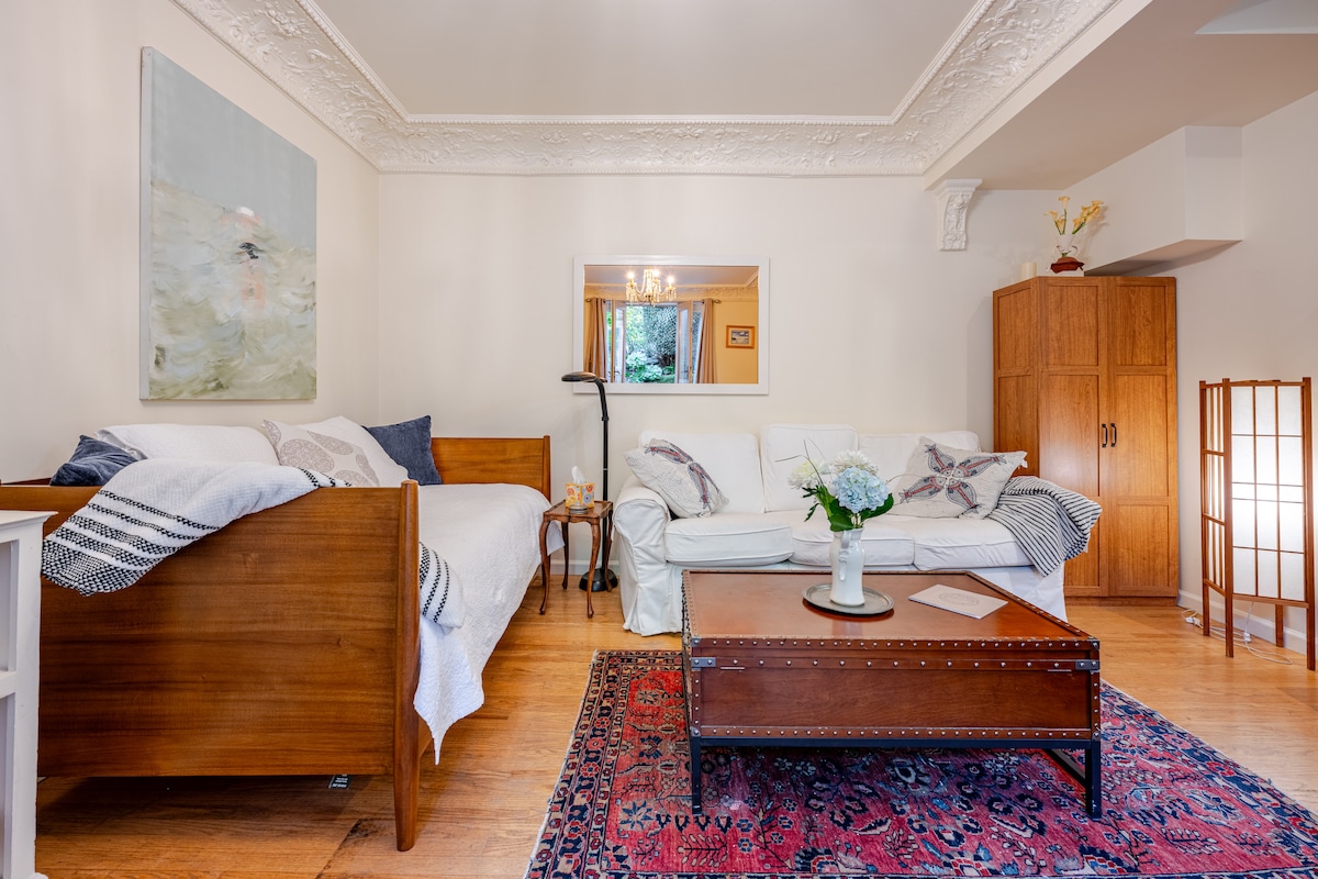 The Ensuite is the house Master Bedroom with large spacious ensuite bathroom. It is closed from the rest of the house and you will have direct access through a private door off of the shared garden. Your guest experience is completely private, NOT through the house living space.
