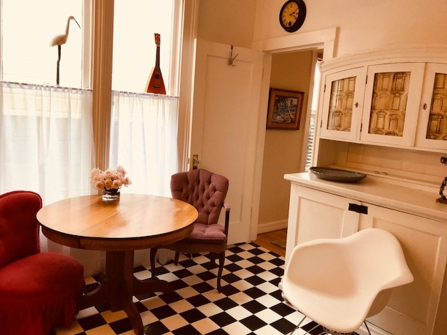 -Ample seating and work surfaces to spread out and work if you wish (note no chair/table in the room)