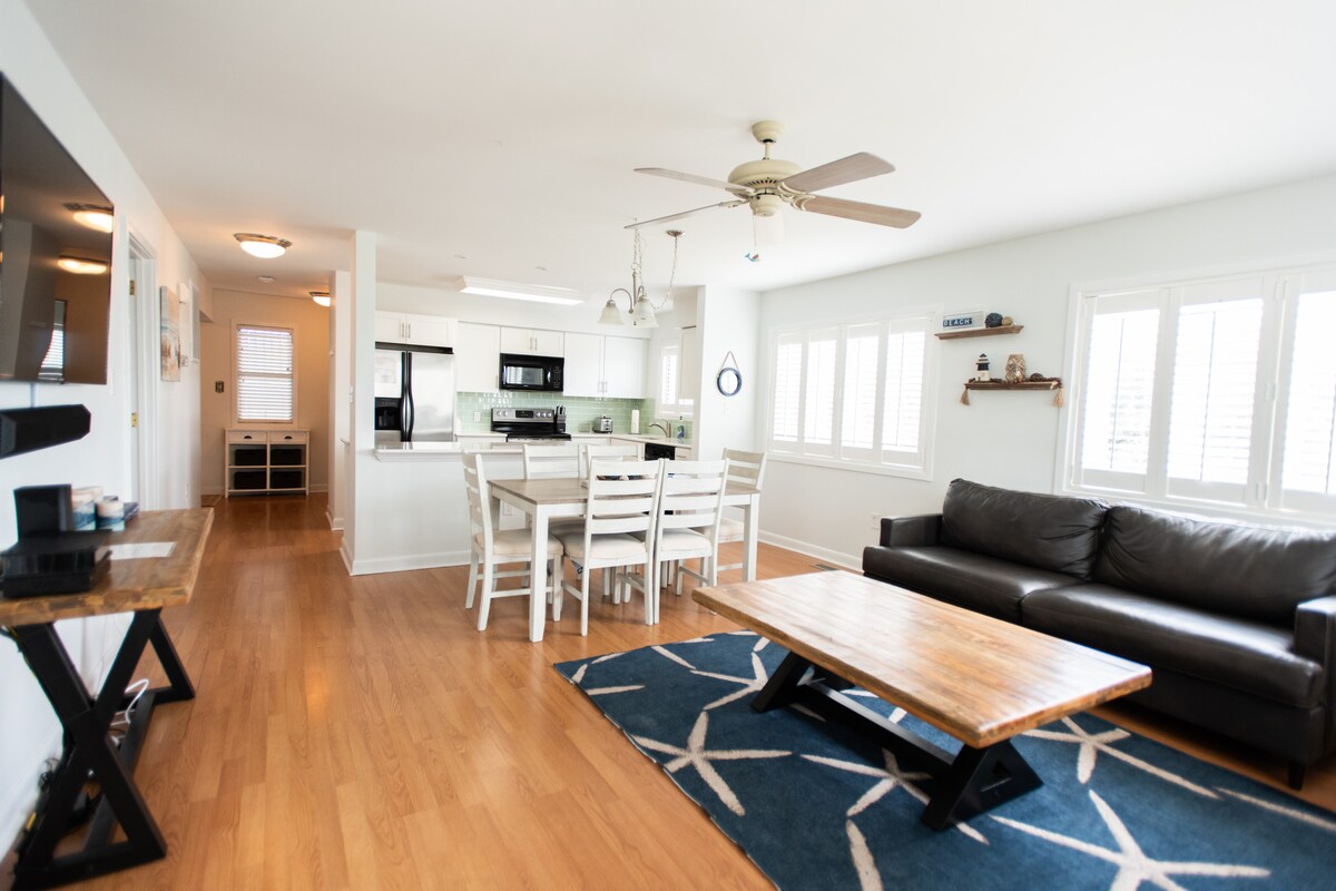 Open-concept living space with plenty of natural light, a fully-equipped kitchen, and a comfortable living area perfect for family or friends. Each bedroom has new 12" memory foam mattresses, ensuring a restful night’s sleep after a day of island adventures