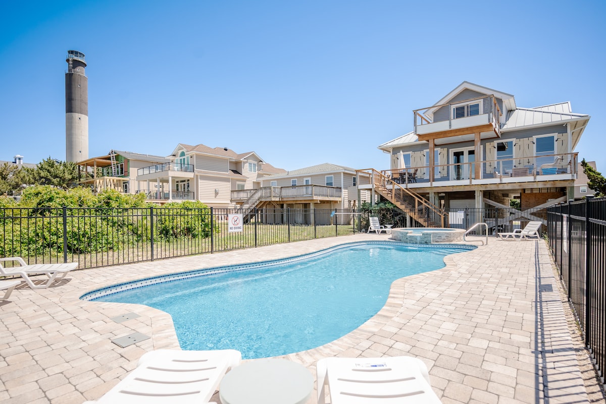 Peace on the Beach - This unique home has everything you need for the ultimate beach vacation with peace and tranquility abounding! Not only does this home offer multiple sitting and dining areas inside, so there is plenty of room for all your family and friends, but with 5 bedrooms and 5 bathrooms, privacy will not be hard to find. The unique 5th bedroom addition with 2 twin beds is accessible through the garage and makes for a fantastic hang-out for the teenagers in the family. The location of this home is like no other, offering so many spectacular views all from one spot - views of the Intracoastal Waterway, Oak Island Lighthouse, Southport, and Fort Caswell all from the street side and expansive ocean views from the other side. Everyone is sure to be able to relax and unwind with their very own private pool and spa, plus a private walkway to the gazebo over the dunes where you can sit and read your favorite book to the gentle lullaby of the waves rolling onto the shore. A few steps more and you can dig your toes into the sand or take a dip in the soothing ocean water. All the Peace on the Beach you need is right here, so make your reservation today!