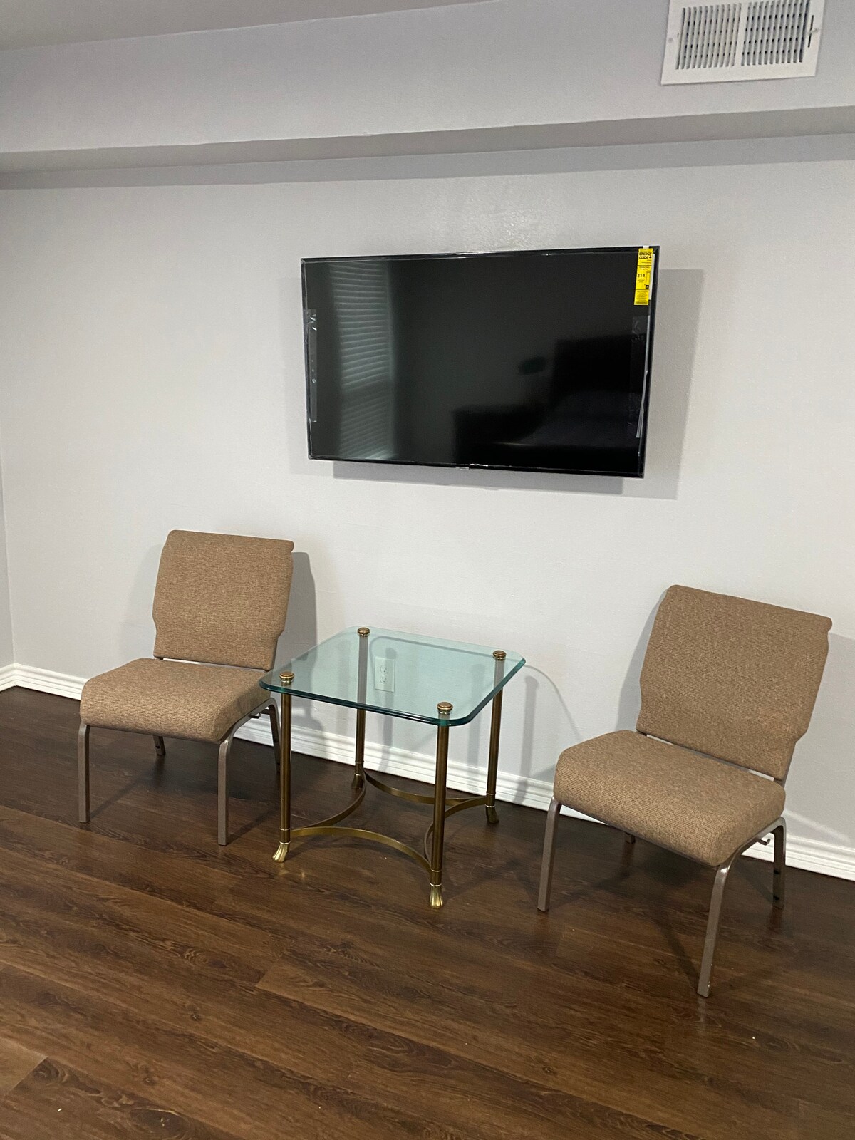 - Smart TV located in living room where you can login to your YoutubeTV, Netflix, etc.