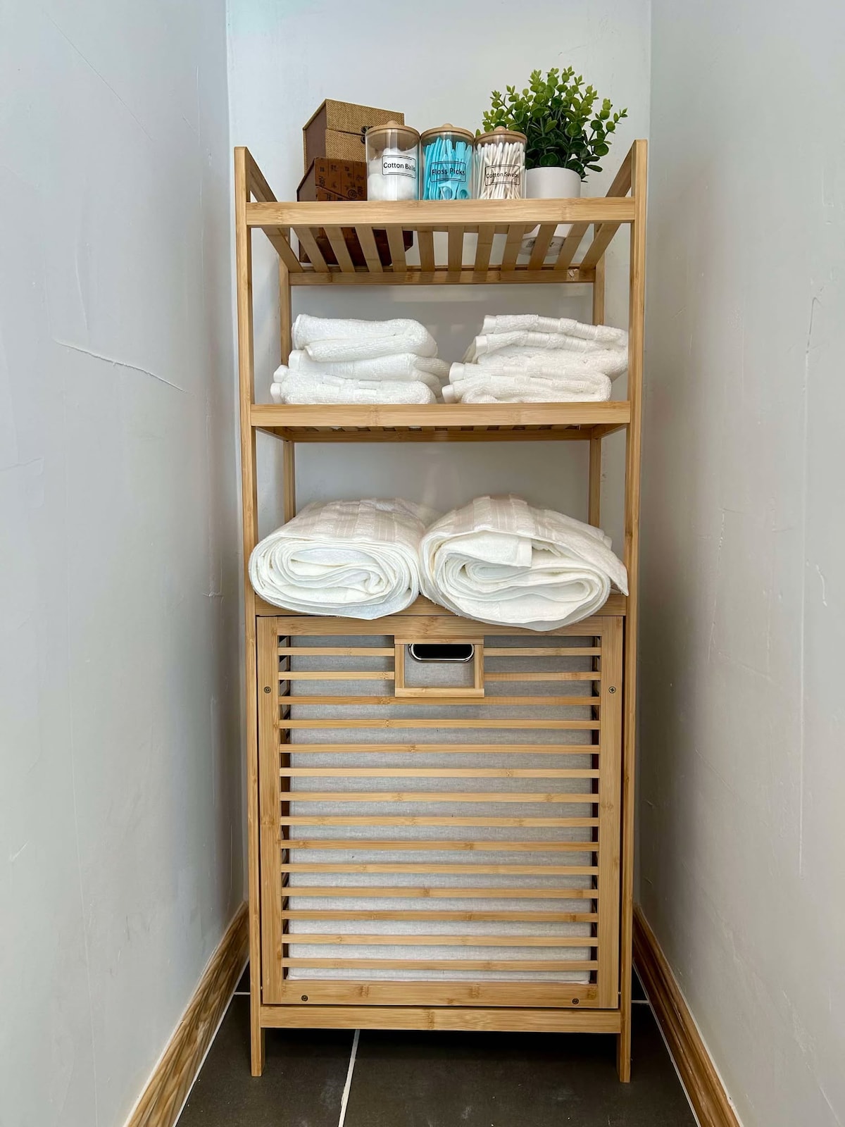 The shared bathroom is stocked with essentials, including shampoo, conditioner, body wash, and toilet paper, so you can settle in without stress.