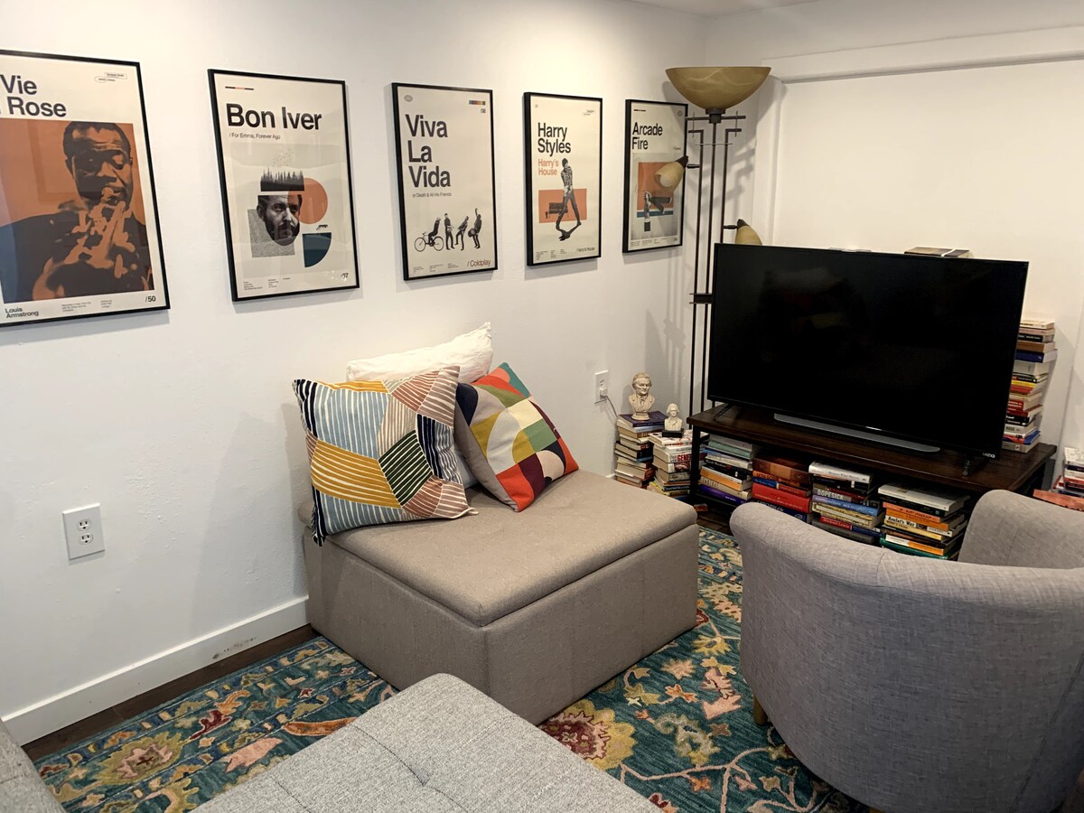 Enjoy an experience at this centrally-located bottom level Airbnb rental. Separate entrance. Free parking. Water, refrigerator, microwave and a place to hang your clothes. Clean towels and bedding. Nice and cool for summer. Close to the highlands . Washer and dryer in space for longer term stay. Tv (you can add your info for streaming platforms ). Lamps. Space Heater and Fan. and clean cuddling blankets. LGBTQ+ friendly