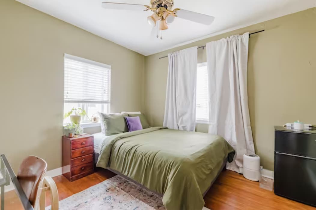 The Guesthouse is a separate structure above my detached garage. You won't share a wall with anyone else and it has its own private entrance accessed through the back patio.