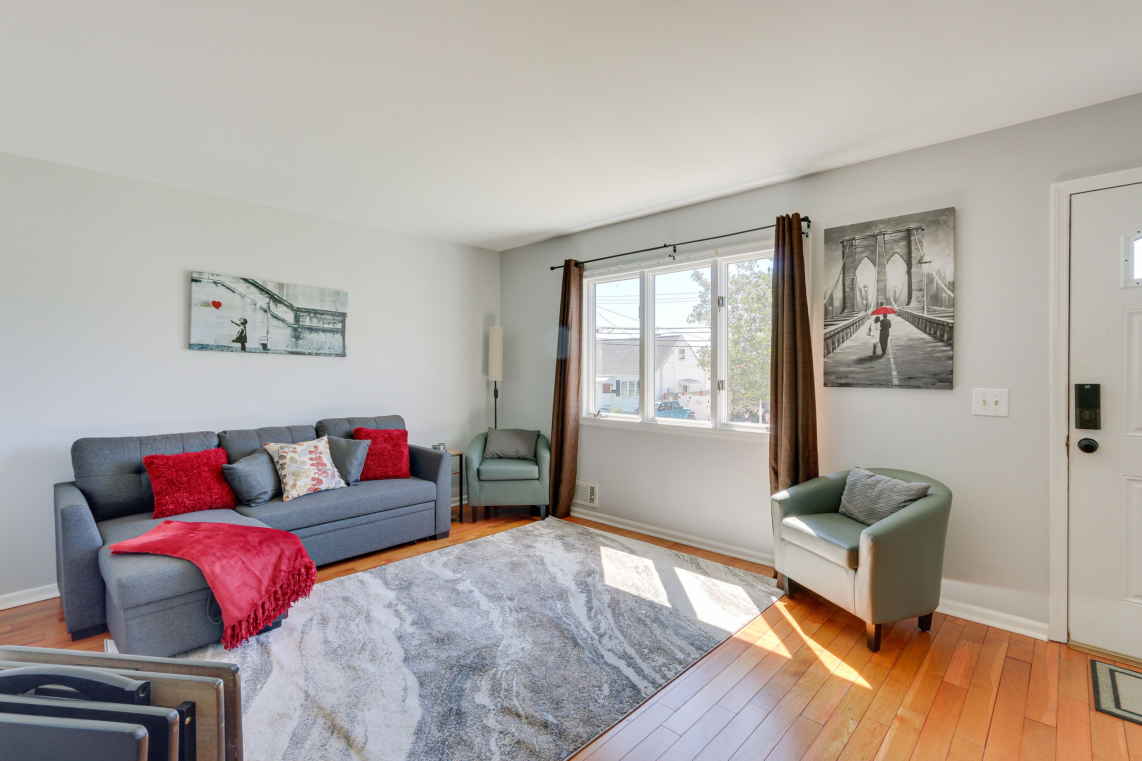 The house is a short drive to other popular destinations including Historic Keyport (5 min drive), Keansburg Beach and Amusement Park/Water Park (10 min drive), Sandy Hook beach and recreation areas (20 min drive), and Six Flags (45 min drive). The location provides easy access to other Jersey Shore beach destinations for convenient day trips. There is also a great park less than a block from the house (just on the corner!), Scholer Park, with a playground, pickle and basketball courts, and more. Take a stroll/bike ride on the nearby Henry Hudson Trail.