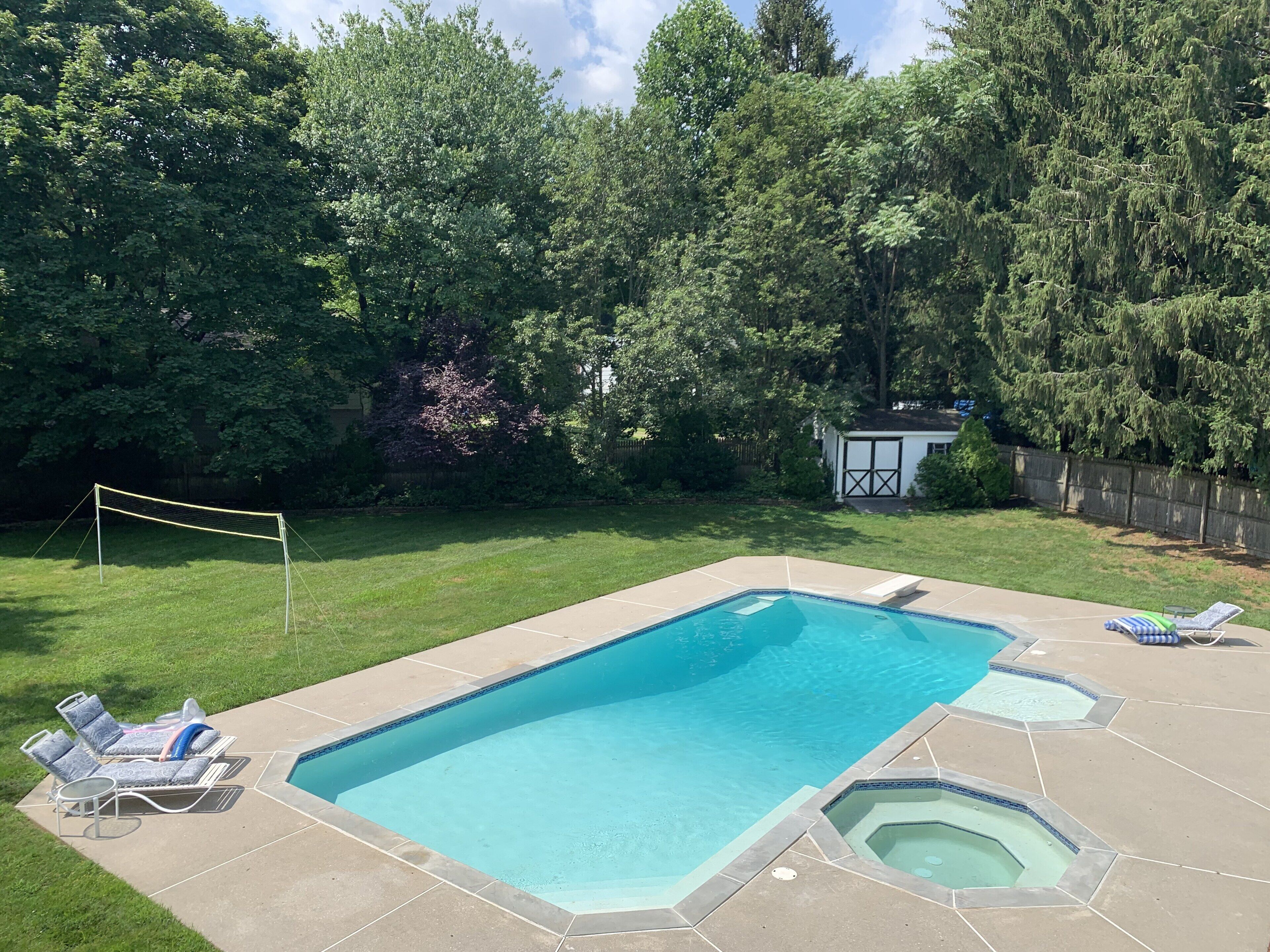 Large 6 Bdrm House, incredible back yard, huge pool, hot tub, sunning area, massive deck with grill, beverage fridge and large grassy area with volleyball net. 600 sq foot master bedroom with sitting area, and large Jacuzzi tub. Minutes from Philadelphia and NJ Turnpike.