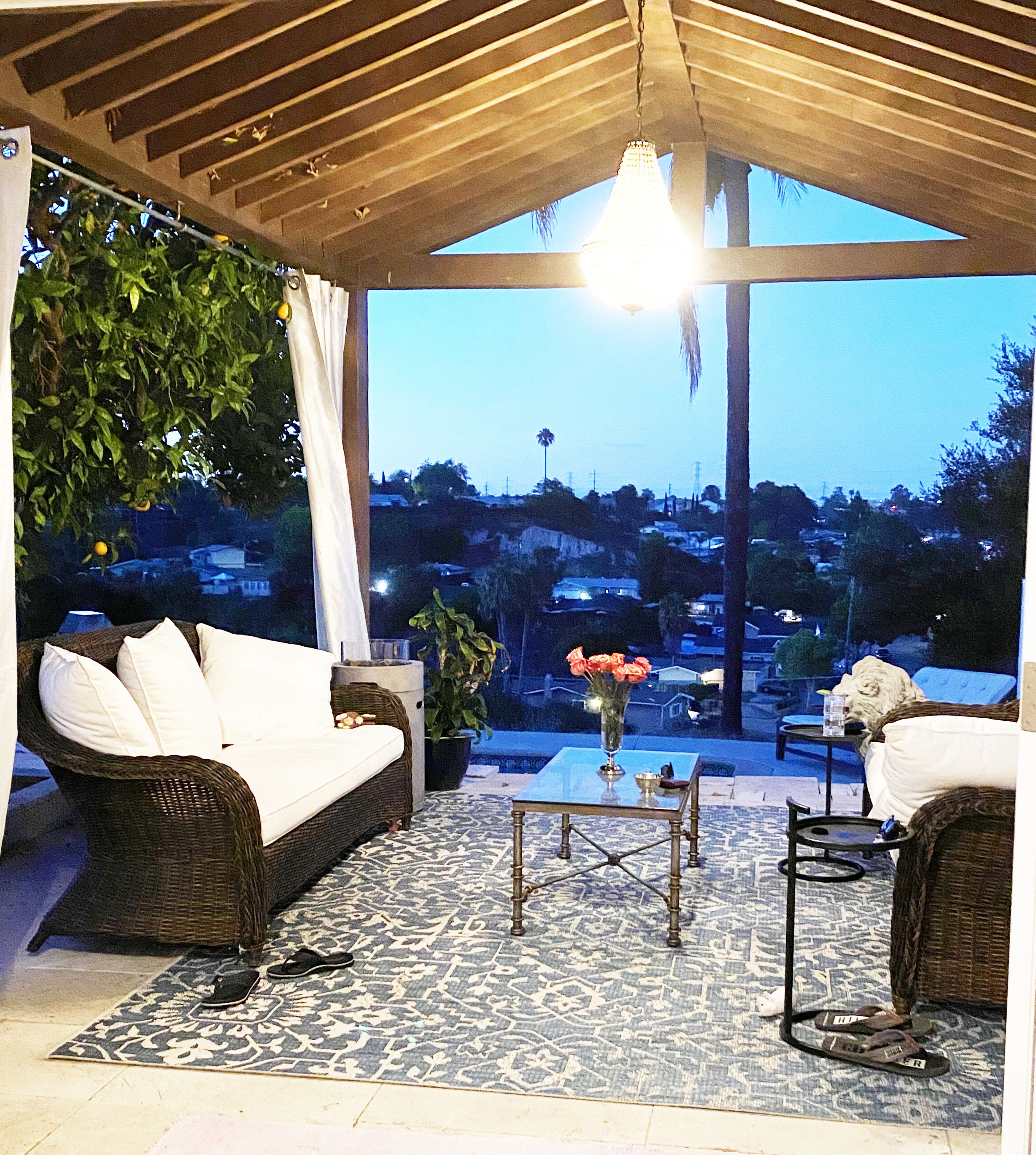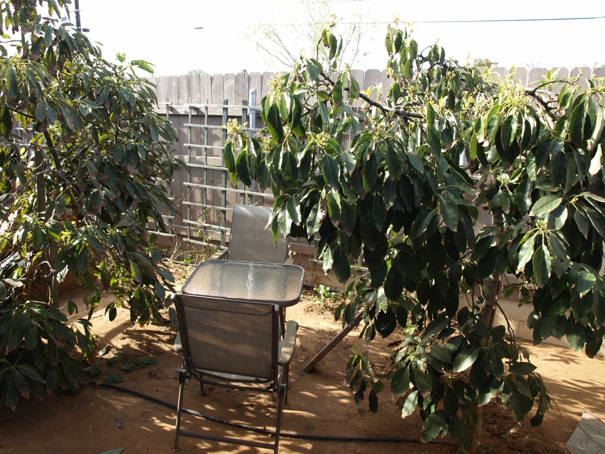 - The backyard is canopied by a giant tree that provides shade and acts as an amazing backdrop for relaxing on a sunny day. The covered back patio is furnished with ultra-comfy outdoor seating around our gas fire pit. The patio is completed with a BBQ under our mature lemon tree. Feel free to pick some fresh lemons!