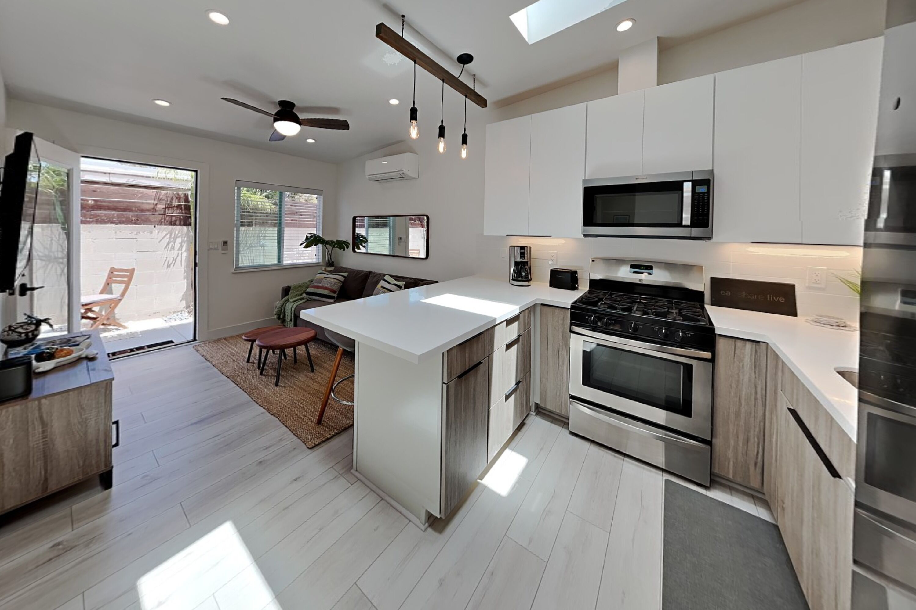 - Professionally designed by Whit & Whims Interiors. This home is a gorgeous modern entertaining hub. The open concept giant kitchen and living room are perfect for everyone to gather for a meal, play board games, or unwind to a movie. The natural light from the ceiling skylight keeps the space feeling bright in the San Diego sun.