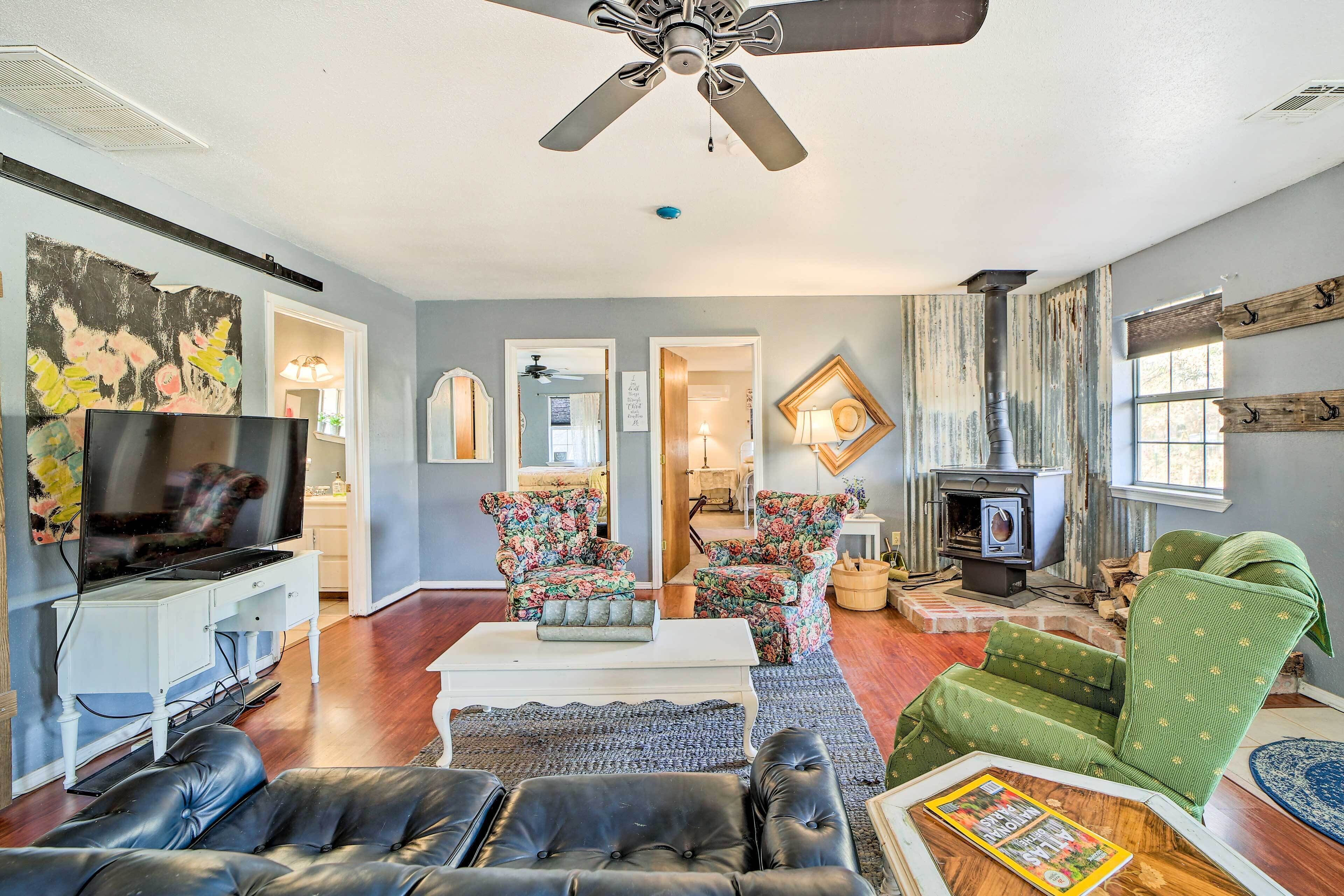 Smart TV | Wood-Burning Stove | Pond Access | ~ 8 Mi to Claremore Lake | Complimentary Breakfast