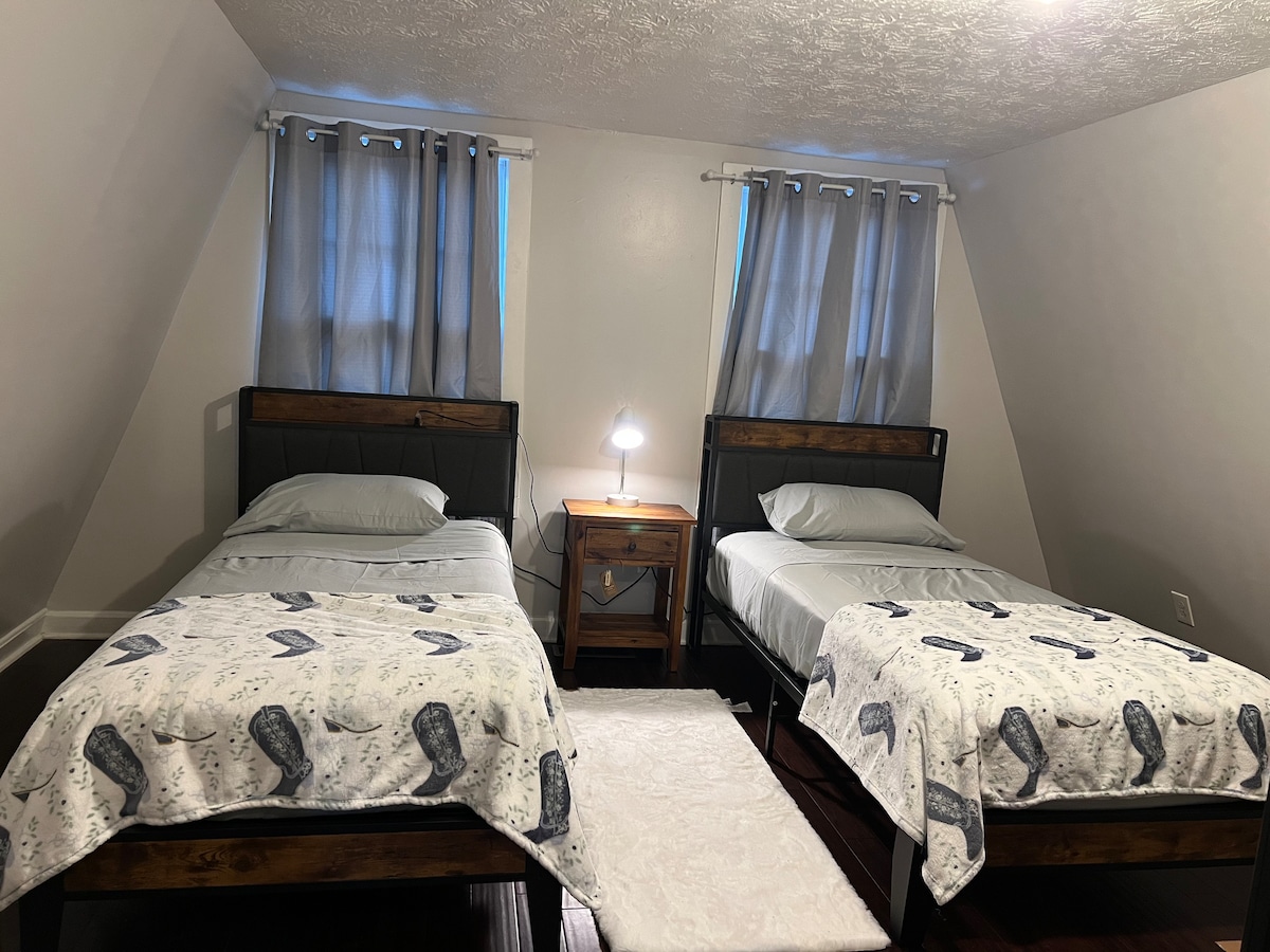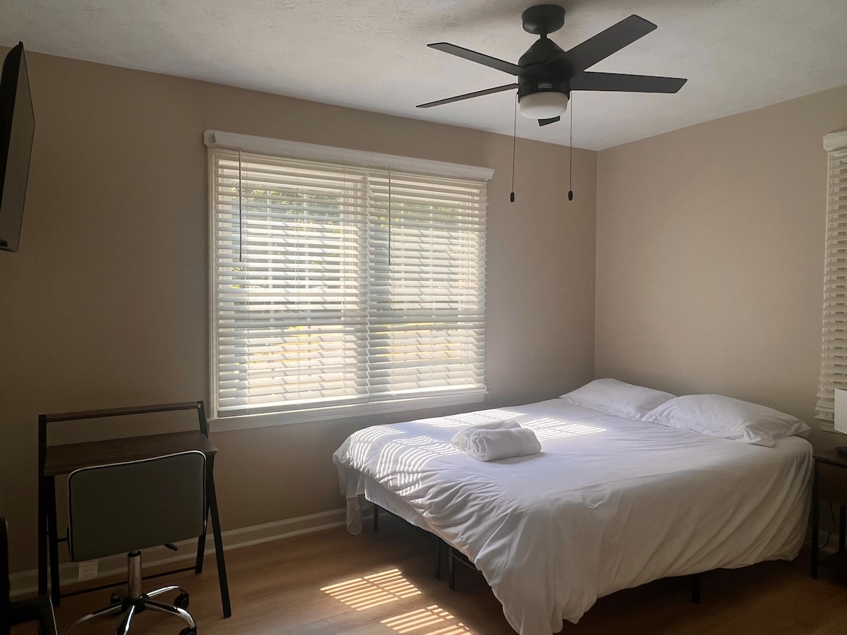 Come and get more bang for your buck! This shared room comes with its own living space with a smart tv in both the living space and bedroom. You will also find a mini fridge to store your food and beverages for your convenience. With access close to the highway, you are just minutes away from everything including downtown Atlanta. The living space can also sleep additional people if needed by utilizing the couch and ottoman.
