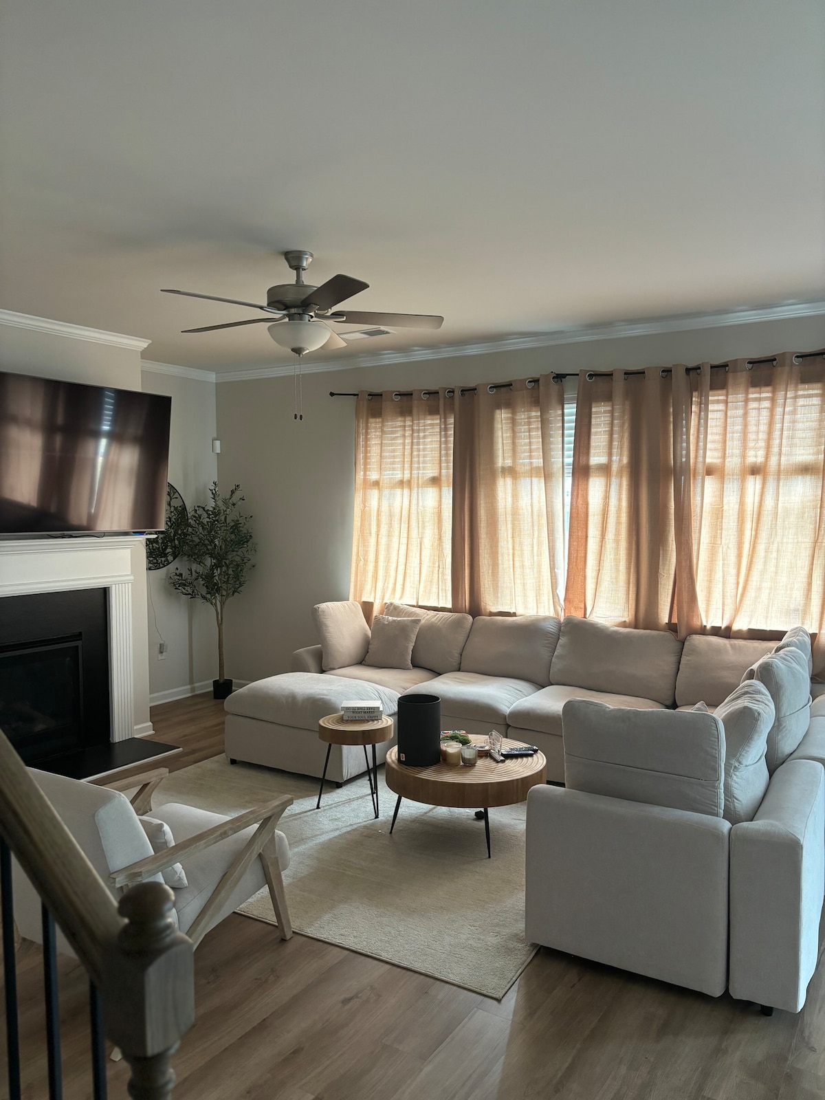 Extra-Large Family Room: Sink into cozy furniture while streaming your favorite apps on the ROKU TV.
