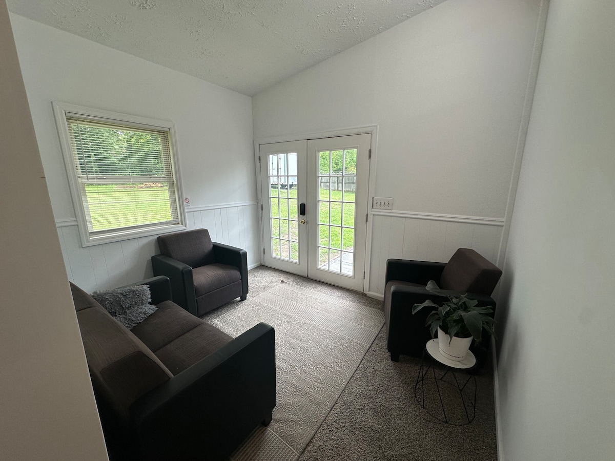 This relaxing bungalow is the perfect location for a getaway or short term business stay. If you are visiting family or just coming to hang out this is the perfect stay! The bungalow is suited with it's own entrance and everything you will need for a home away from home. It is located near shopping, eateries and WellStar Cobb Hospital. Only 7 miles from Cumberland Mall and 14 miles from Downtown Atlanta. If you are looking for a private quiet getaway this is the perfect location for you!
