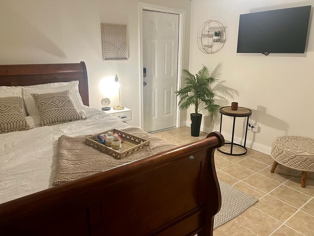 You will have the entire studio apartment downstairs to yourself on the lower level of the home ,it comes equipped with a microwave ,fast wifi and smart Toshiba Tv please enter your own log -in for Netflix ,Amazon ,Hulu etc .