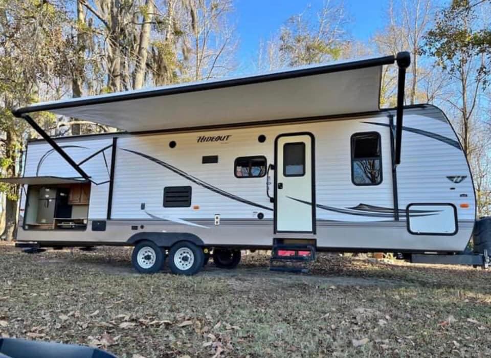Reconnect with nature at this unforgettable lake resort escape. Minutes from the Augusta National Golf Course enjoy this getaway camper. Keystone Hideout 33ft. Travel Trailer. Very well maintained with the following features: grey & black water tanks, 2 propane tanks, 1 entrance door, Living Area, U-shaped Dinette, Kitchen Oven/ Stove with 3 Burners, Mid-size Refrigerator, 1 Sofa, 1 Bunk House with 3 Bunk Beds Twin, 1 Queen Size Bed, 3 Convertible/Sofa Beds, & full outside Kitchen. Family Fun!