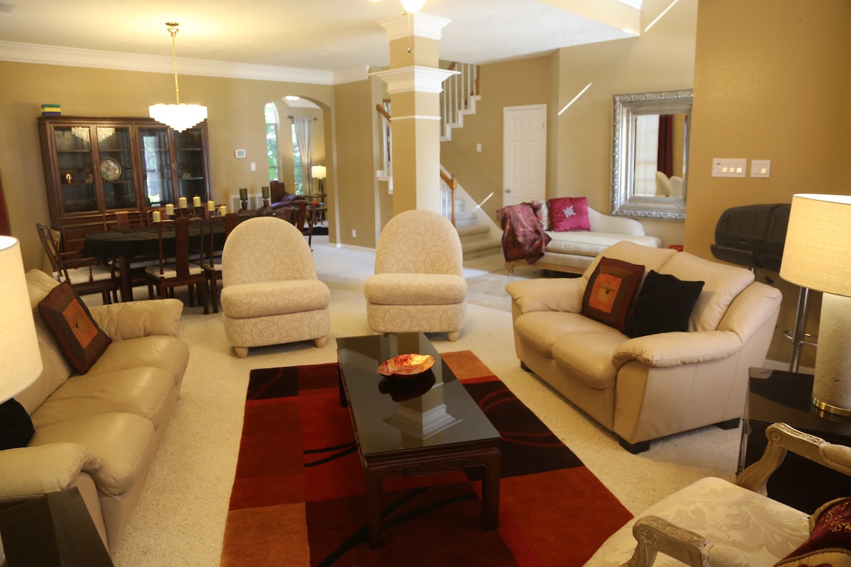 - Spacious living room – open-concept with plush seating and a 65" smart TV.