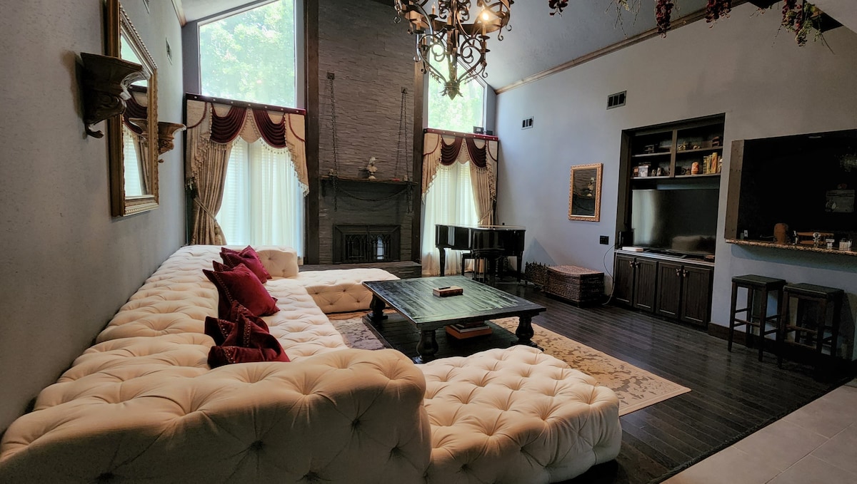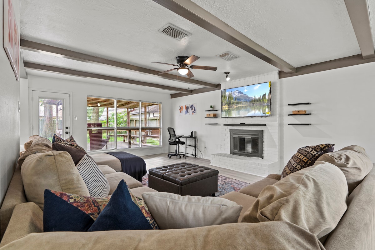 INDOOR LIVING: Smart TVs, fireplace, walk-in closet, mini fridge, board games, bathtub/shower