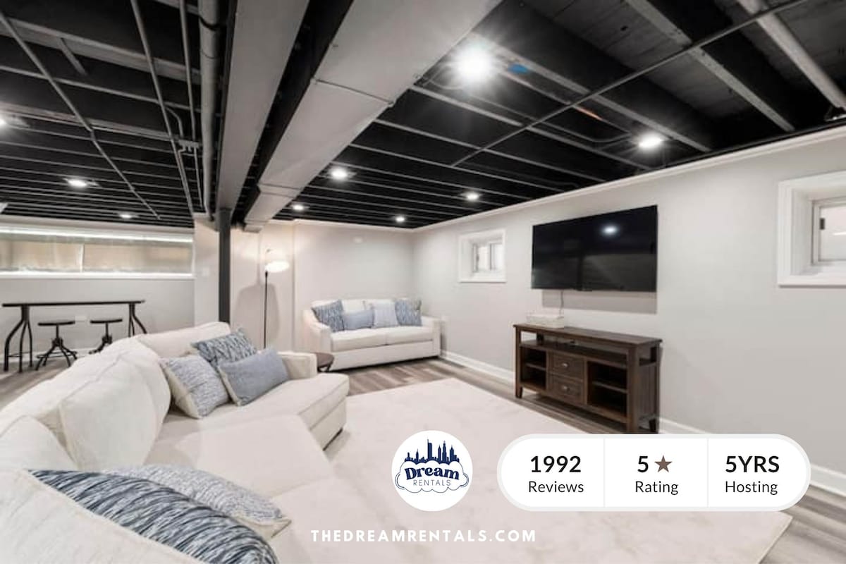 Welcome to our charming and spacious Chicago-themed garden apartment, perfectly located near public transportation for easy access to the city. This cozy, family-friendly space features minimal stairs (just 8 steps down) and offers a fun air hockey game for those relaxing days spent inside!