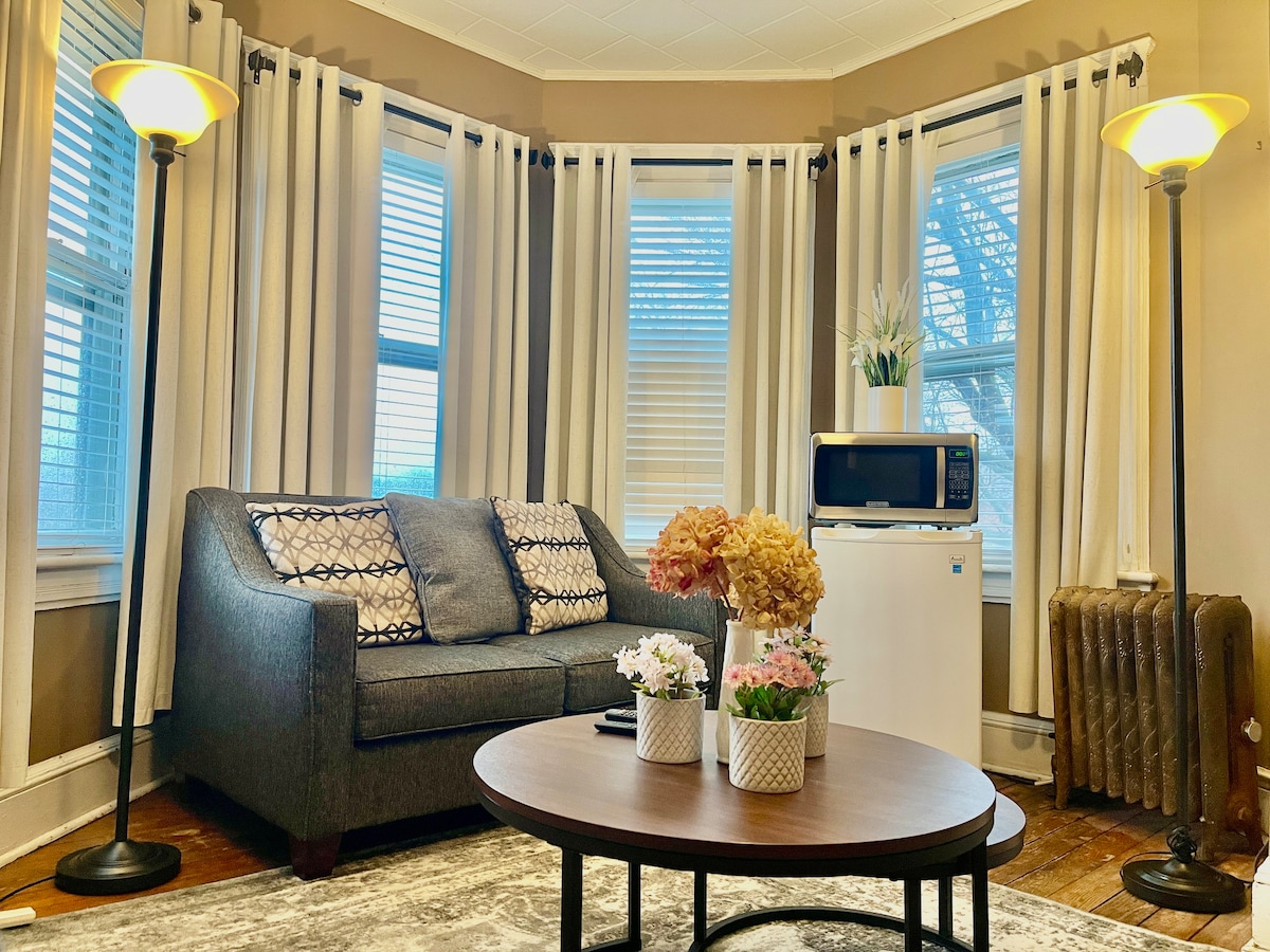- "The property was everything as advertised and the host went above and beyond to work with me" - "My wife, adult son, and I stayed for 2 nights. The room was clean and neat and the owner responded promptly to our 1 question, but the following issues caused us to reduce our rating to 3 stars:1) Street parking only! One night we had to park 2 1/2 blocks away, the second night 4. And this was after driving for 10 or 15 minutes looking for a place. This was a major irritant after spending the evening in NYC. 2) There were no night stands next to the beds, so phones & watches being charged needed to be on the floor or away from the bed. We could not have a glass of water bedside. 3) There is baseboard heating, but apparently no ability to cool or ventilate the rooms.4) There was a Keurig type coffee maker, but not a single k-cup of coffee. Who packs k-cups when they travel??? Surely a couple of k-cups next to the coffee maker would be appropriate. "