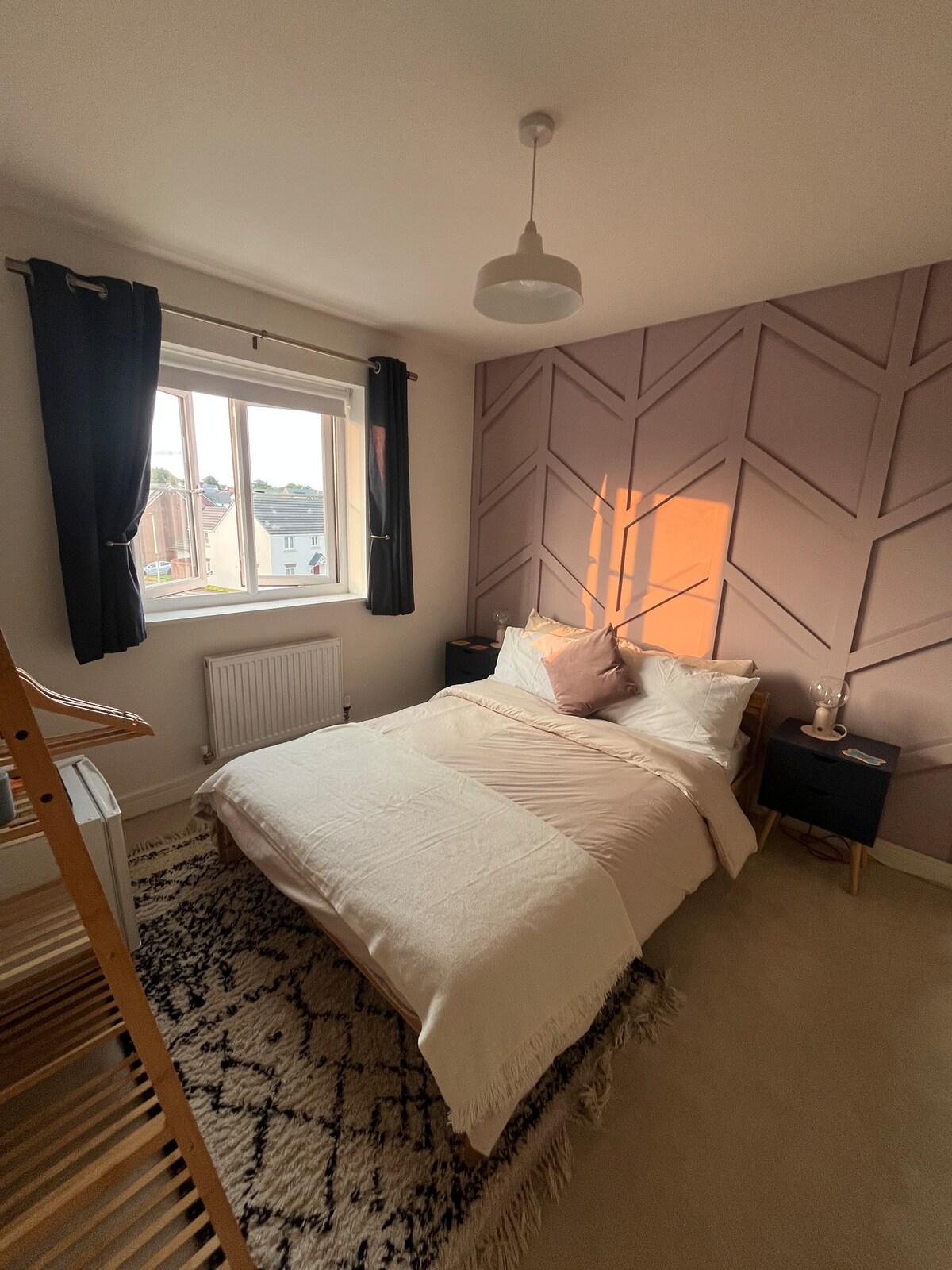 A bright and cozy double room in a semi detached house on top of a hill overlooking Exeter. Stunning sunset views across the city, access to a wild garden, hot tub, and peaceful spaces to unwind. Whether you're here for work, to explore Devon's coast and countryside, visit friends or family, or just take a break en route, you'll find everything you need to feel at home and receive any advice needed to make the most of your stay.