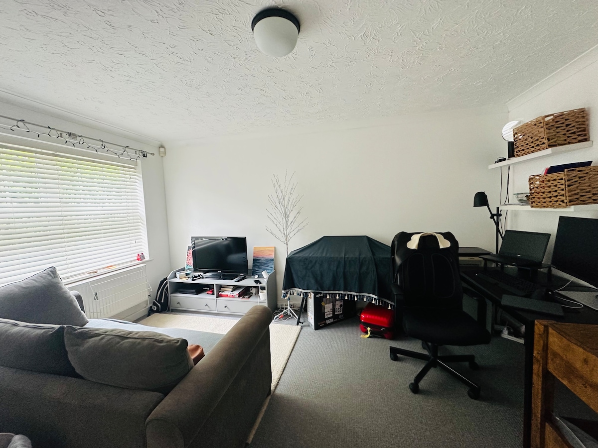 we are excited to offer a quiet small double bedroom in our lovely house, just 2-min walk from Digby train station. From there, it is only a 7-min ride to Exeter Central Station. This prime location provides easy access to amenities within a 10-15 min walk, including David Lloyd, Exeter Rugby Stadium, Tesco, IKEA, Curry’s, KFC, Taco Bell, Local pubs, and more.
