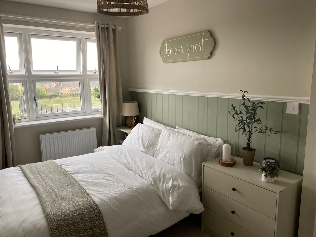 Beautifully presented light and airy two double rooms and one single room overlooking communal green in Kings Heath, DIGBY. Close to M5 and A30 & A38. 10 mins walk to Met Office, 6 minutes drive to Exeter Airport, 10 mins to RD&E Hospital. Train station (Sowton/Digby) 5 minutes walk from the house. Exmouth 15 mins, Exeter City Centre 6,minutes, Topsham 3 mins. Exeter St Davids Station 6 mins.