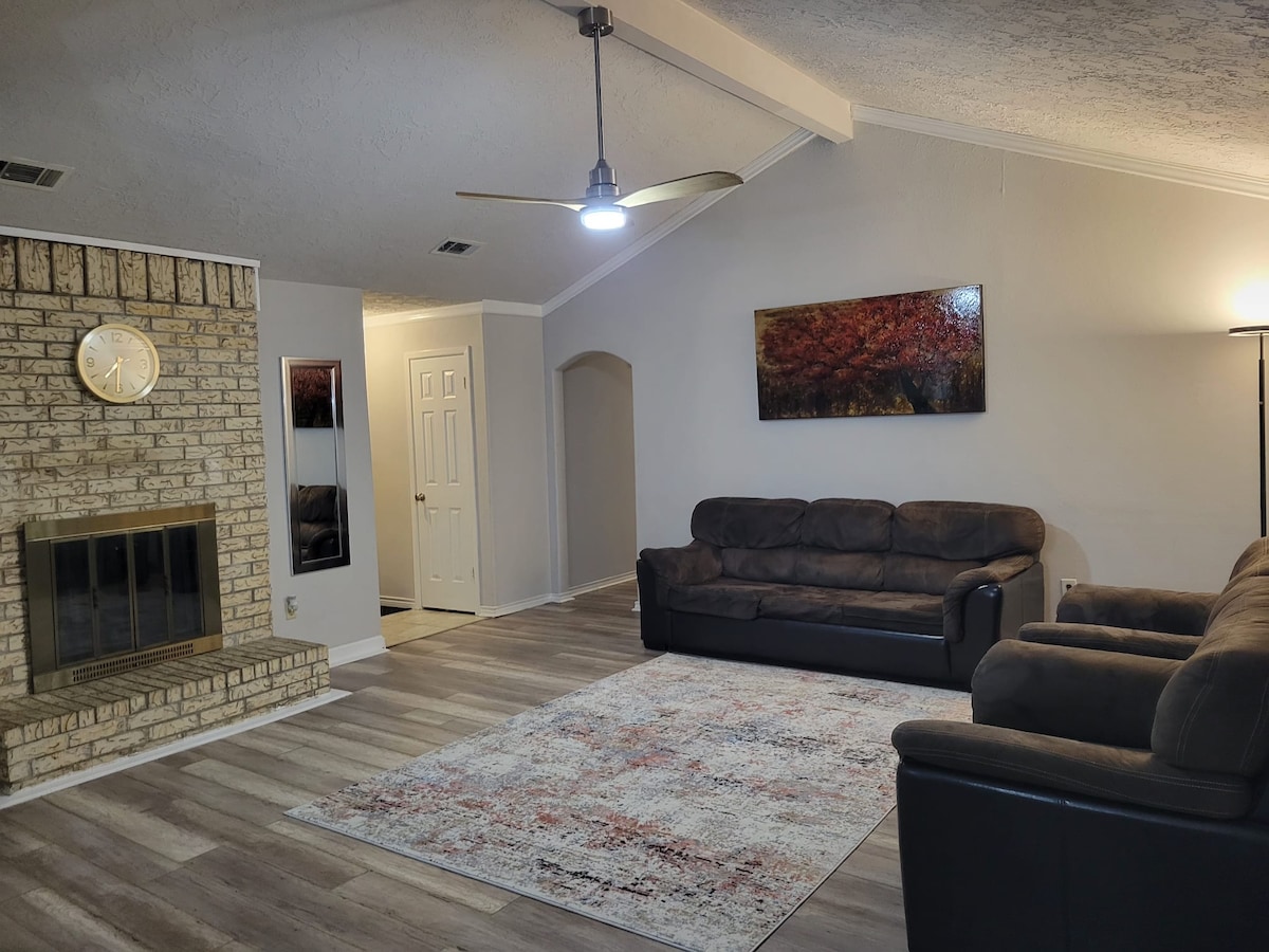 Relaxing 4 Bedroom Home offers accommodations in Conroe, 5.7 miles from Cynthia Woods Mitchell Pavilion and 5.3 miles from The Woodlands Mall. Both free Wifi and parking on-site are accessible at the vacation home free of charge. The accommodation offers a shared kitchen and a shared lounge for guests. Offering a patio and garden views, the spacious vacation home includes 3 bedrooms, a living room, satellite TV, an equipped kitchen, and 2 bathrooms with an a bath or shower. There's also a seating area and a fireplace. Guests can also relax in the garden or on the sun terrace. National Museum of Funeral History is 17 miles from Relaxing 4 Bedroom Home, while Sam Houston Race Park is 29 miles from the property. George Bush Intercontinental Airport is 18 miles away.