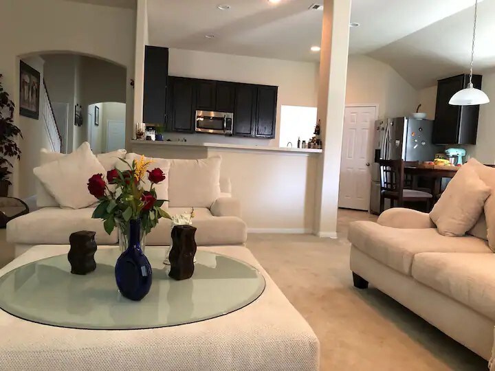 Enjoy a spacious 2-story home with 4 comfortable bedrooms, 2.5 bathrooms, a fully equipped kitchen, dining area, and cozy living room. The home also includes a game room, laundry room, and a large backyard—perfect for relaxing or entertaining. Great for families or groups.