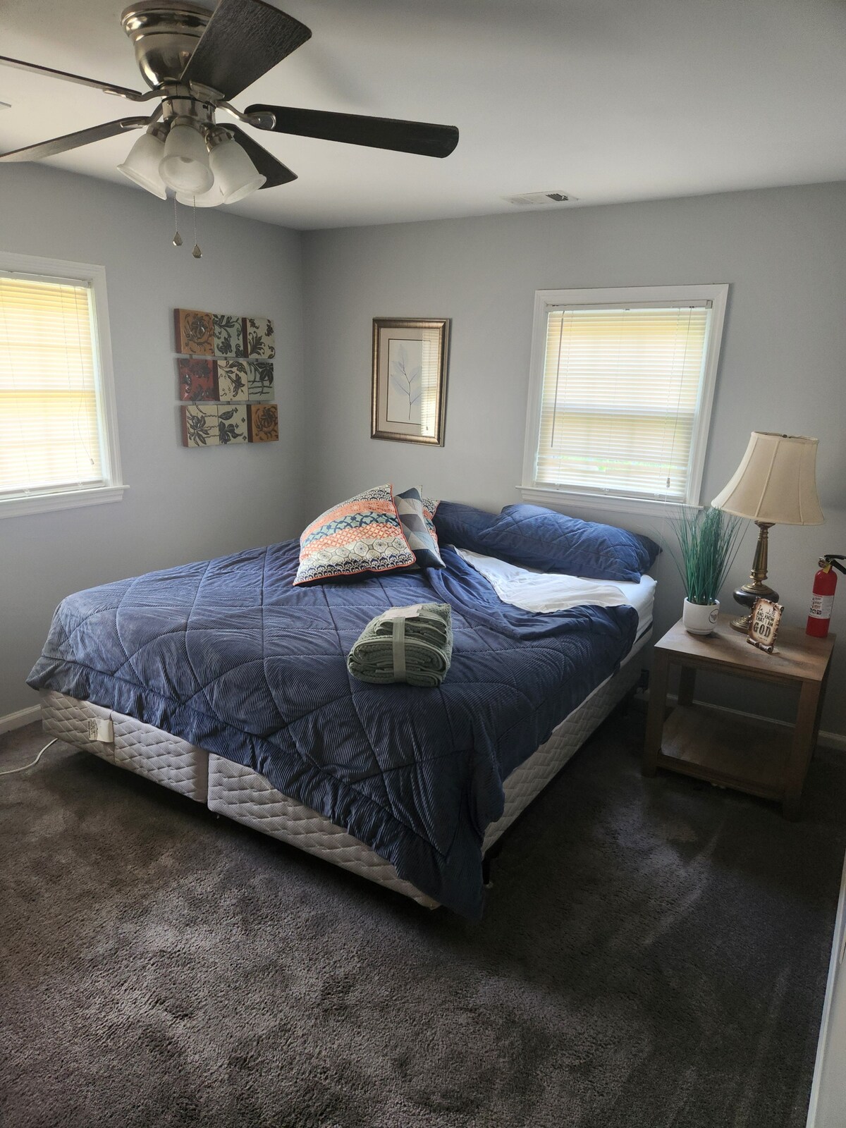 DISCLAIMER: The room is in part of the basement that I converted into a bedroom. The room sits next to the laundry room and plumbing. You will be able to hear the laundry room and guest walking upstairs, The room has a space heater for heat and a floor fan for cool. (Quiet hours start at 10pm to 8am). The door in the room leading to outside is for emergency exit only and sunlight. The room is in the basement so it may smell damped at times, (No worries, I put a dehumidifier in the room that you can turn on or off when needed). Moreover, I put a fan and working AC unit to help circulate the air.