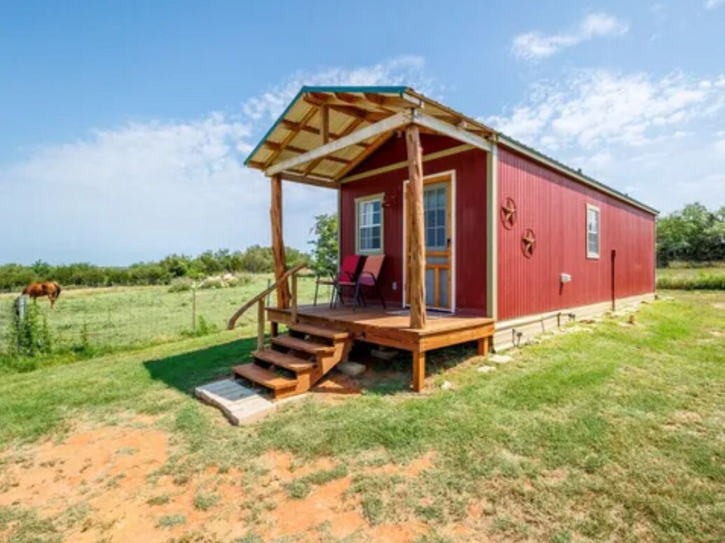 This special place is close to everything, making it easy to plan your visit. Only 6 minutes to Comanche square where you will find shopping and dining. Also, 25 minutes to Lake Proctor. Enjoy swimming, fishing and outdoor activities. simply sit on the porch and watch the sun set or sunrise while the birds and horse roam around the pasture. This cabin is a rustic getaway, no bedding or towels are provided. BYOB, bring your own bedding and towels. There is a king size bed and a twin couch.