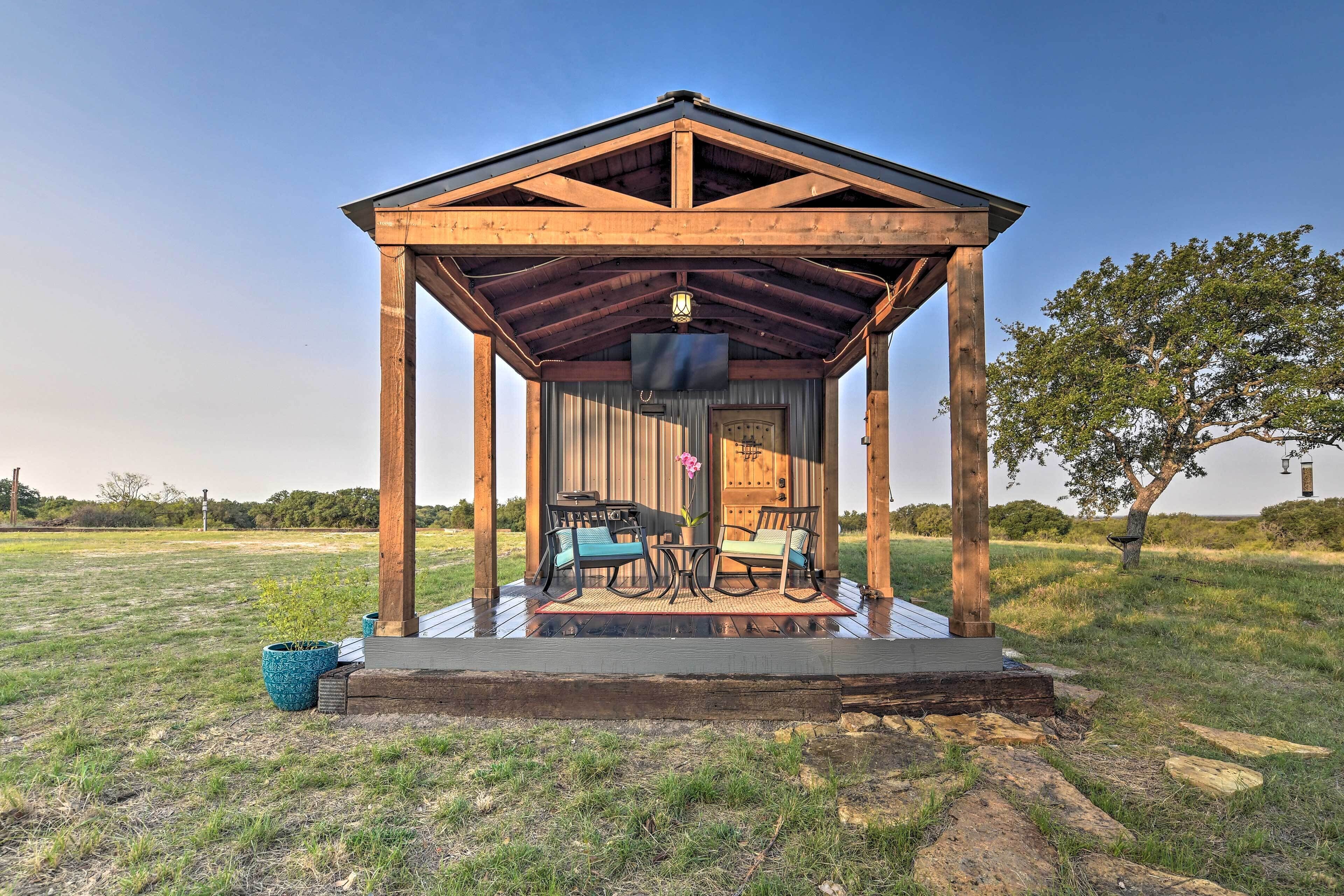 Outside relax and sit back on the lawn chairs and enjoy the huge view of the Comanche valley, the star filled night sky, and the wide variety of birds, deer, and other wildlife. Bring the provided portable bluetooth speaker out with you and listen to your favorite music!