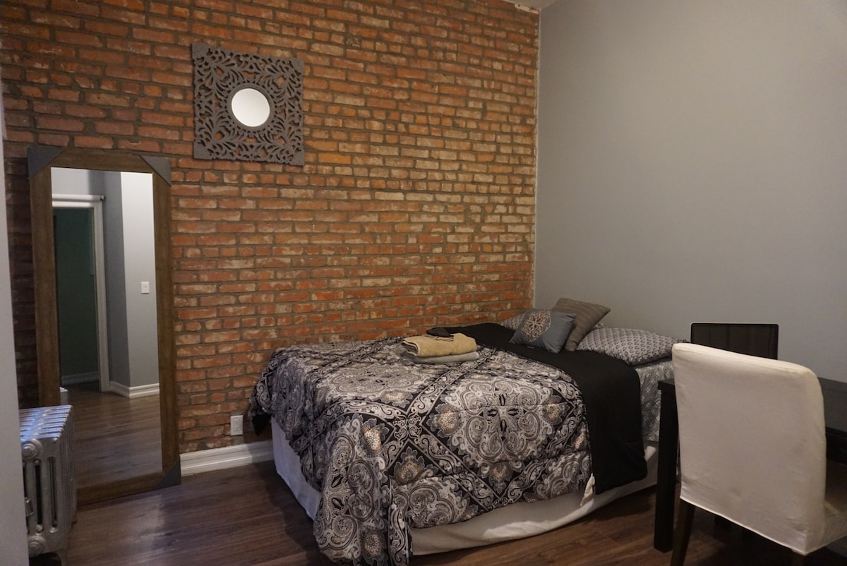 - "I loved the brick look, the electronic lock was nice as well. " - "Pleasant stay bed is comfortable staff was very helpful with helping me check in using the code to inter the building I highly recommend this place to friends and family I’ll be making reservations again for next holiday location near by food court and train stations bodega stores I felt safe staying there every floor as a security camera " - "Cozy room in mint condition. Clean bathrooms and shower room as well "