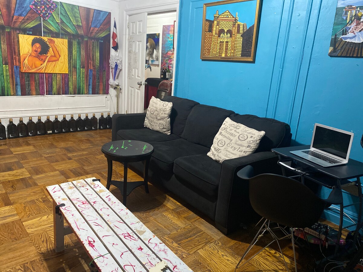 Casita CTM is a quiet spacious artistic space. If you play the piano or guitar and want to practice we have it for you. We are located a few blocks away from Yankee Stadium. The Gateway mall is walking distance. Near public transportation and about 15 to 20 min ride on the D train to Rockefeller Center, and Central Park Columbus Circe and Lincoln Center. International food restaurants in the area and also fast food delivery available. 15 minutes walk from the Bronx Children Museum.