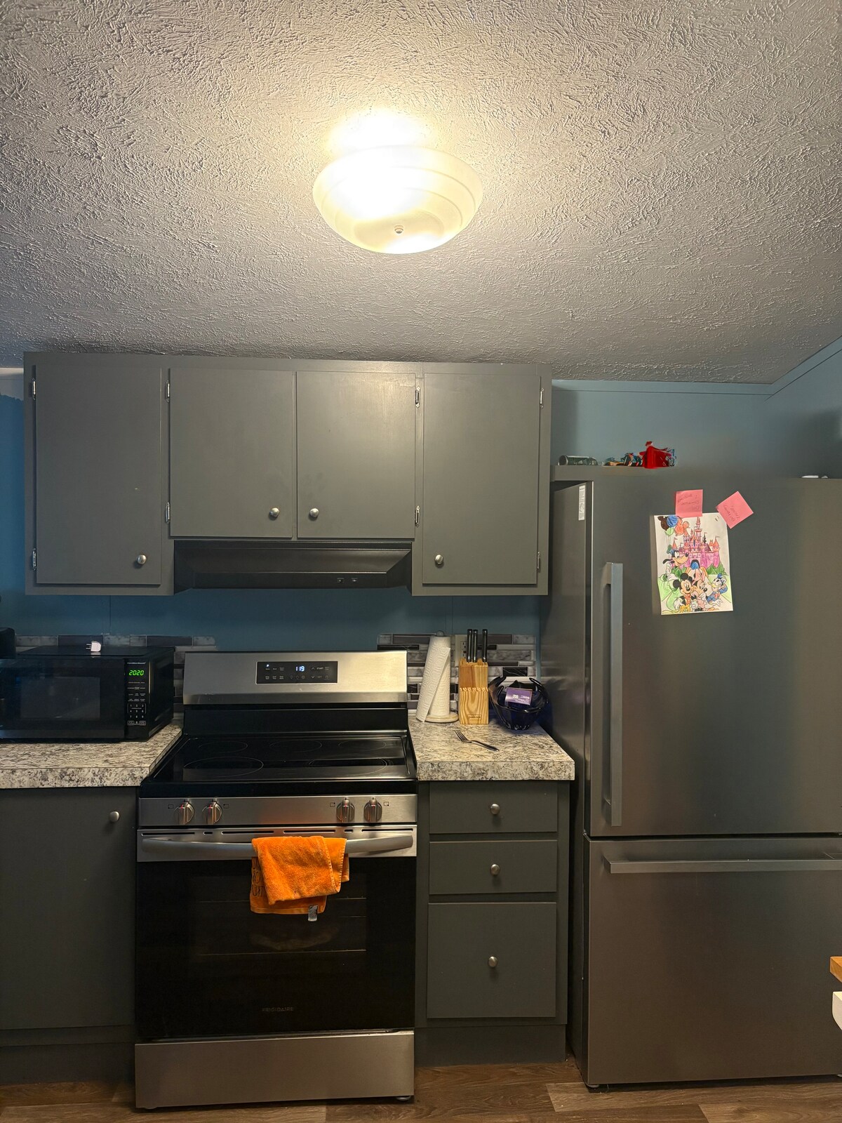 The bedrooms come with a new posturepedic mattress and purple mattress. The bedrooms are super spacious. Bedding is fresh, clean new. The home has a 65", 55", 50" and 36" Hulu TV with over 120 channels plus Netflix, Amazon Prime, HBO MAX, Peacock TUBI and Pluto TV are also available. Brand New washer and dryer available with complimentary wash detergent and fabric sheets. Complimentary water, coffee, sugar, and creamers. The kitchen is fully furnished with pots, pans, plates, cooking utensils, and silverware, pictures show available furnishings. The doors are old and original to my home. With that said, the bedroom doors do not lock. The half bath in the master bedroom is super small. The full bathroom only has a stand-up shower, no bathtub. The 3rd bedroom is upstairs. This home is absolutely beautiful, peaceful, charming, comfortable, and cozy. New remodeled kitchen with new stainless steel appliances. Thank you for considering my home for your stay.