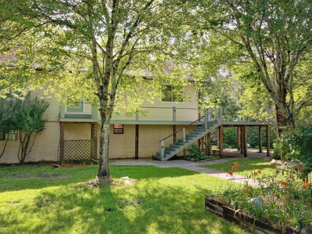 When quality time and outdoor adventure take center stage, this Crestview vacation rental rises to the occasion! This heavily wooded 2-structure property boasts a main house with 1 bedroom and 1 bathroom, and a small additional house with 2 bedrooms and 1 bathroom, ensuring privacy and comfort for the whole family. Enjoy local daytime fishing at the on-site river just down the wooded trail, nighttime campfires and s’mores, and breezy beach days at Henderson Beach State Park — just 35 miles away!