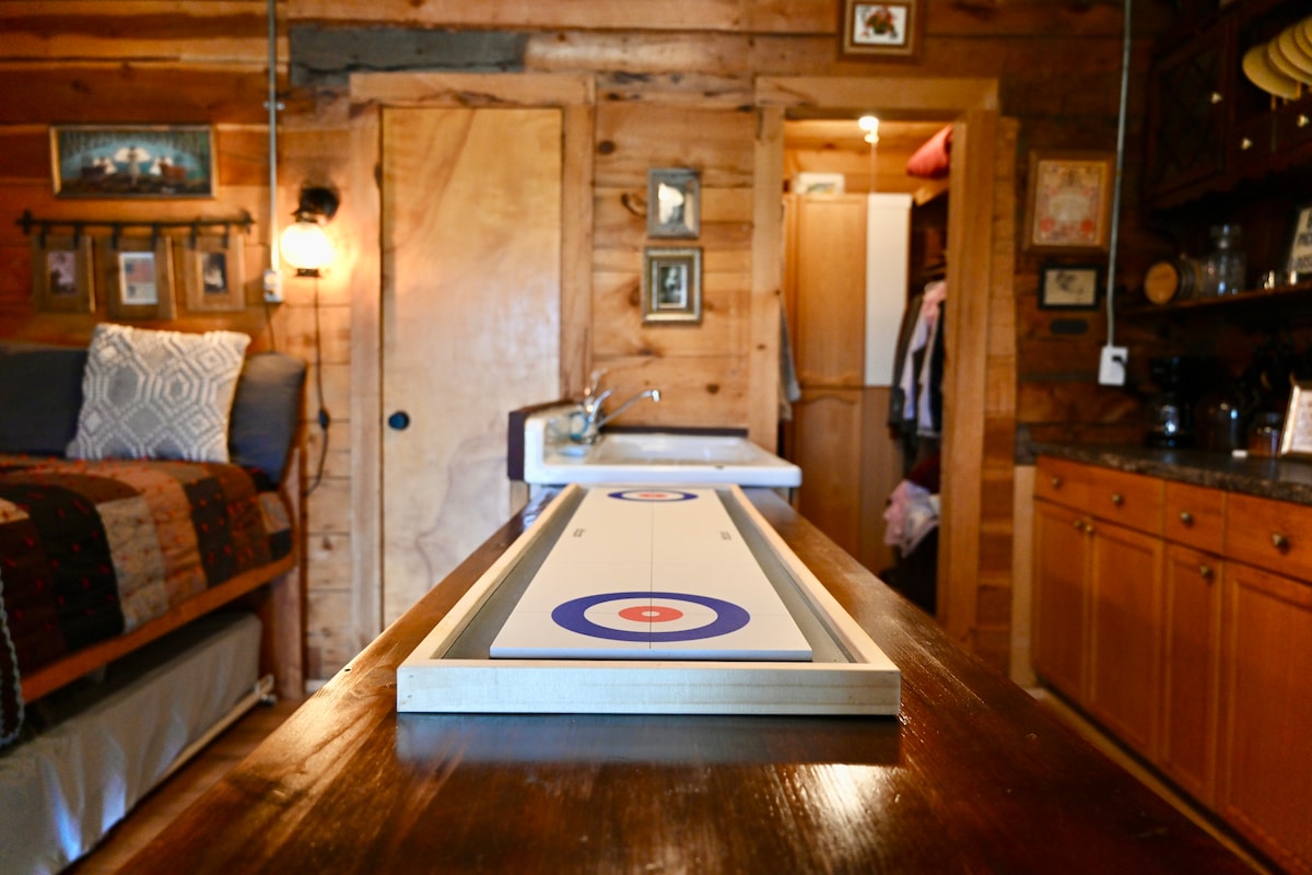 (Studio cabin provides two twin beds and sofa bed equipped with bunky board and memory foam for maximum comfort) Cornhole, Swings, Hot Tub, Horseshoe pits games and Wii