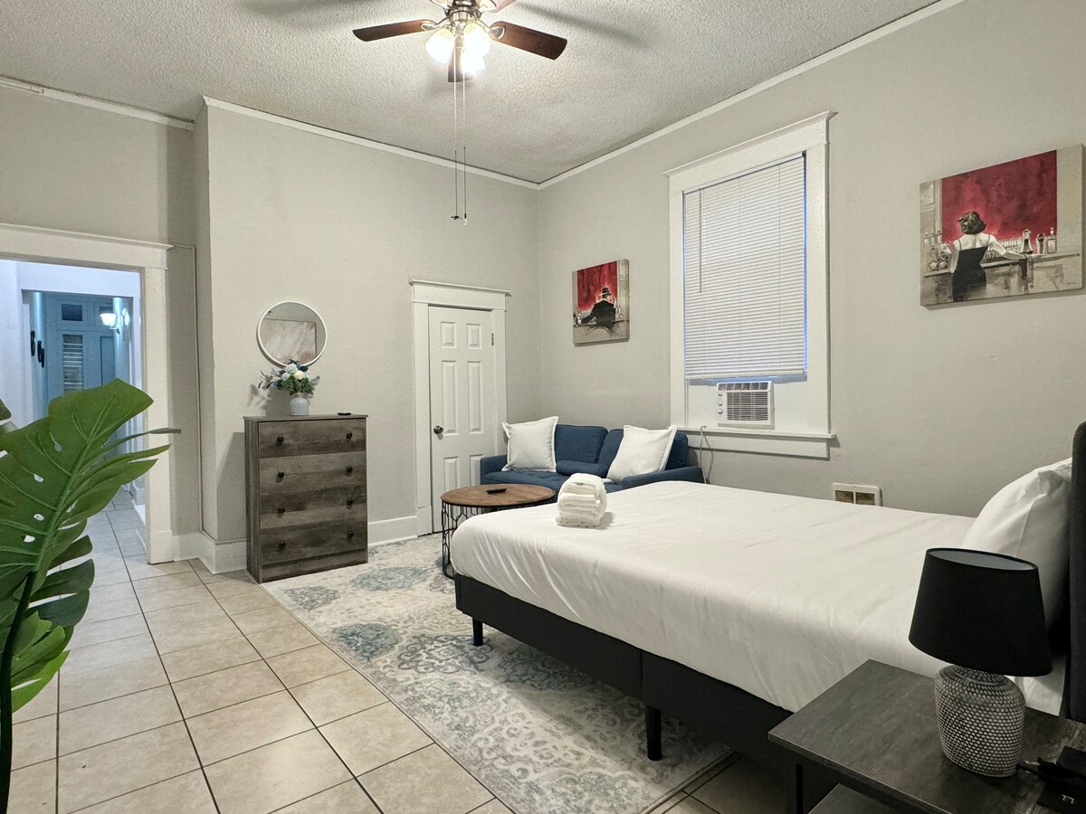 Step into your sunlit upstairs oasis in a 1924 duplex, Midtown Balcony Memphis, nestled in Memphis’s Evergreen Historic District. High ceilings and original crown molding frame a space crafted for both productivity and play.