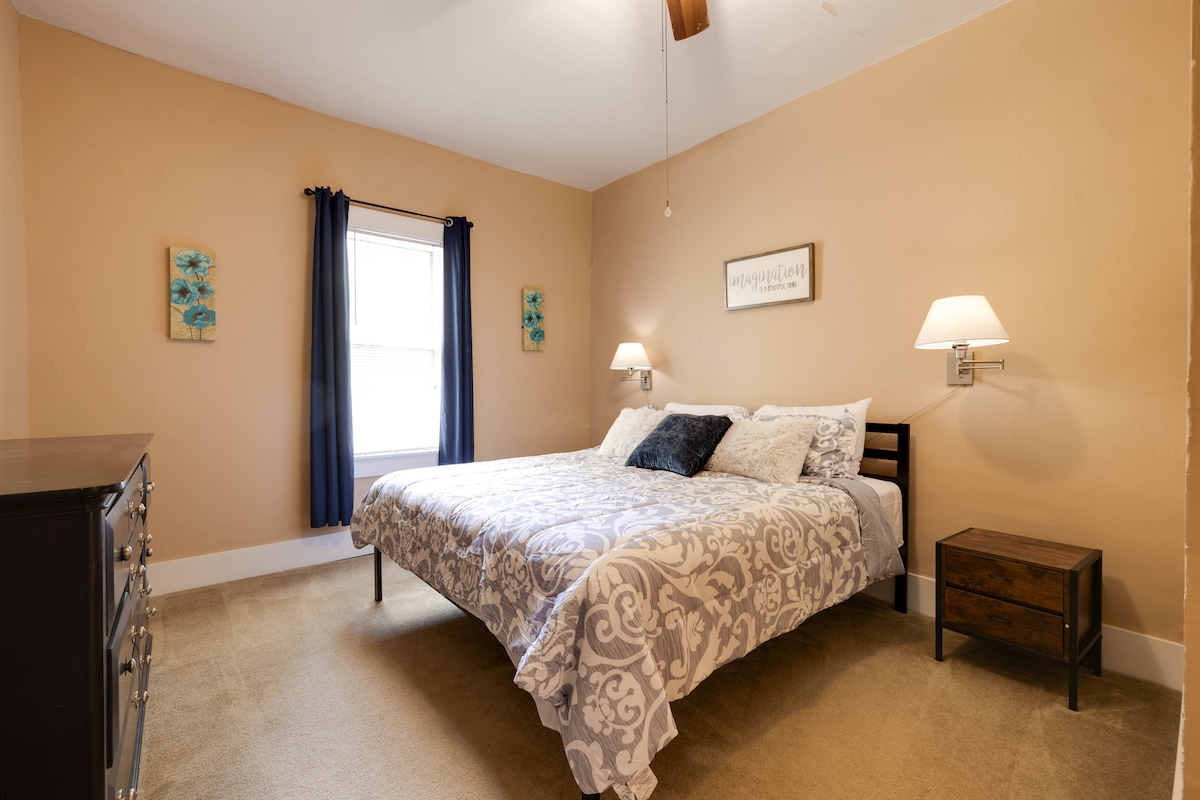 Sunlit upstairs retreat in Midtown Memphis—revitalize, connect & explore the city. Walk to Crosstown, Overton Park & Zoo or cruise to Overton Square & Downtown. 3 bedrooms (king, queen, twin / trundle), queen sleeper, fully equipped kitchen, dining-room workspace, Roku TV, private balcony & laundry. Free Wi-Fi, coffee bar & starter essentials. One marble bath with great water pressure, extra towels & large mirror. Perfect for groups seeking comfort and connection.
