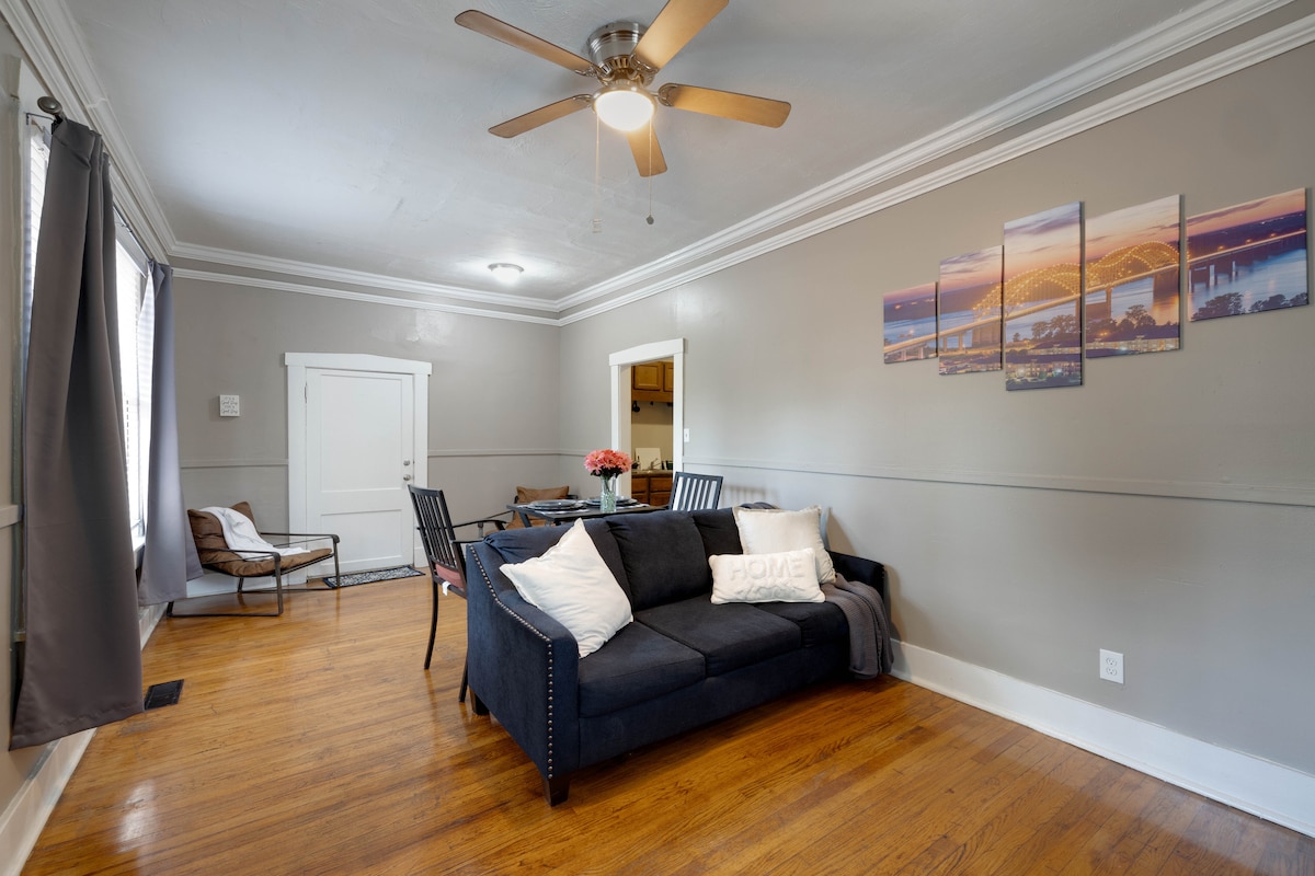 - "We truly enjoyed our stay here. It had charm. It was clean and beautifully decorated. It was a nice neighborhood. We" - "Charming and comfortable apartment in Memphis (with an added bonus of being by Crosstown Concourse)" - "Southern hospitality at it's best" - "Memphis Midtown" - "Adorable place; we would definietly return!" - "Only there 3 nights. Had the Lyft take us to Beale Street. Close to grocery store." - "The outside was not up to date but the inside was beautiful"