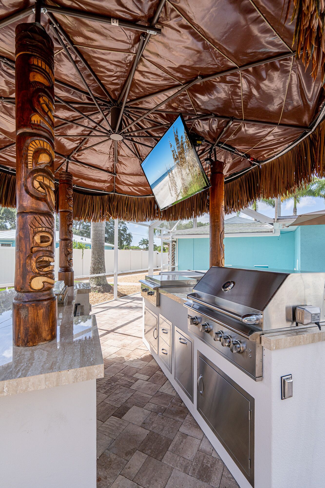 Outside: Large yard with plenty of space, that is fully fenced in for privacy. There is a screened in lanai with a pool that includes a spa tub (THE POOL AND SPA ARE NOT HEATED). The pool has plenty of chairs, and a dining table. There is an outdoor propane grill to enjoy the beautiful Florida outdoors.