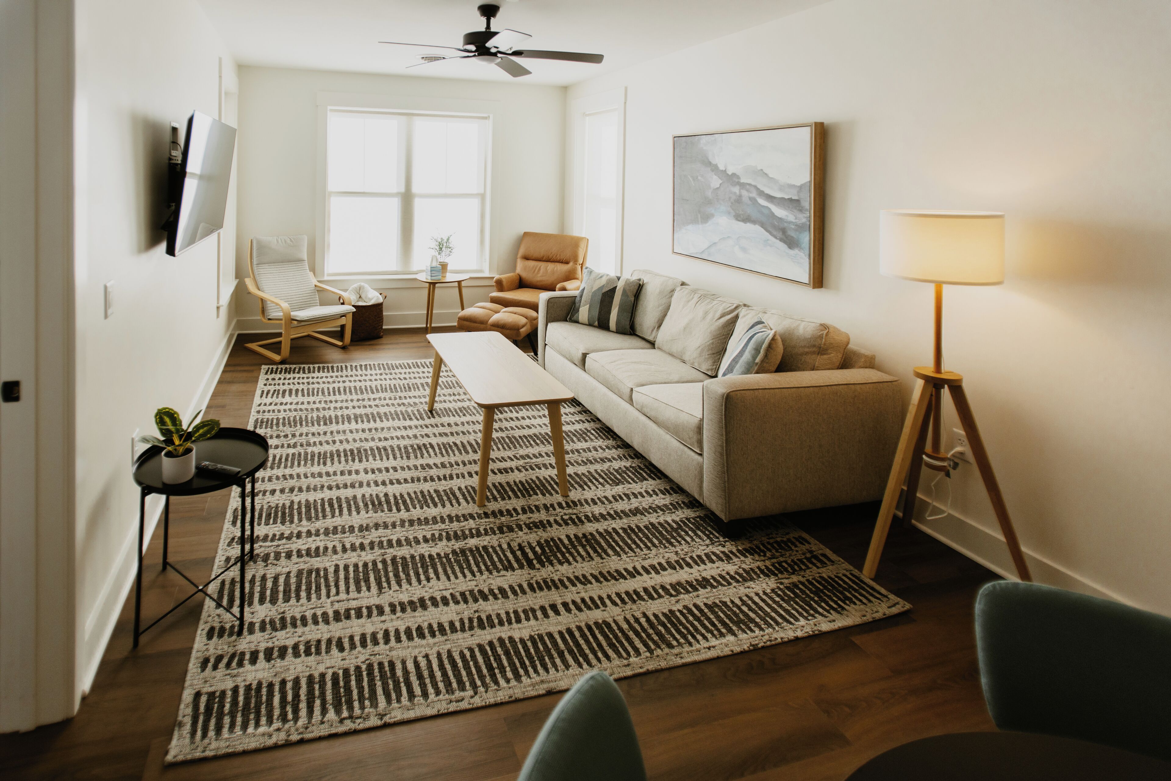 Stay comfortably in Dalton at this 2-bedroom interconnecting suites. Each bedroom features a nice king bed, ensuring a brilliant night's sleep for all guests. With 2 bathrooms, you'll have plenty of space to freshen up and enjoy the cool shower amenities provided. The additional space includes 2 living rooms, each equipped with a cozy sofa bed, perfect for relaxing and unwinding after a day of exploring. Each Suite has a fully equipped kitchen with all the comforts of home. The back two Suites have direct access to the 2nd floor covered porch. Located in Downtown Dalton, along Ackerly Creek, this property allows you to immerse yourself in the local charm and experience everything this cool town has to offer. Fall in love with Dalton and enjoy the magic it has to offer.