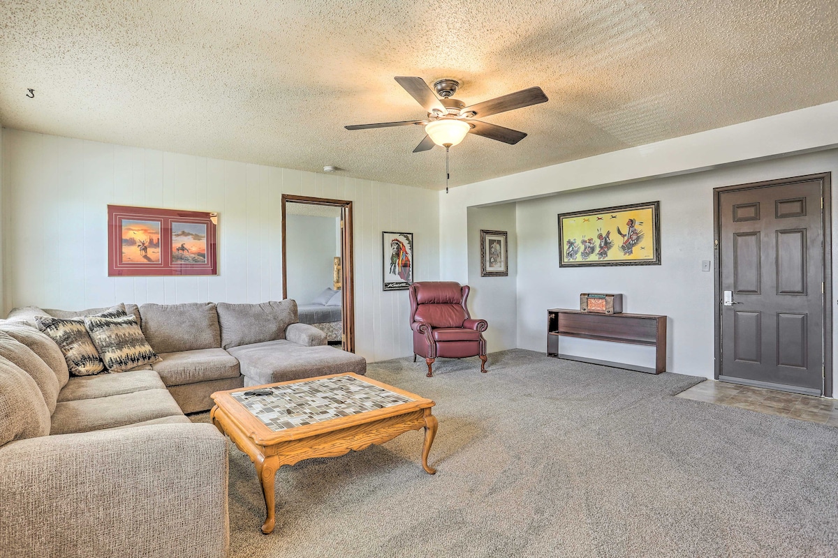 Unwind in the cozy living area, where you can kick back on comfortable seating, stream your favorite shows on the TV, or simply enjoy the warmth of the decor that reflects the history and natural beauty of Chadron and the Pine Ridge region.